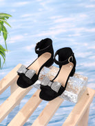 زوج واحد من الصنادل الصيفية المفتوحة من الأمام للفتيات مع تصميم عقدة من اللؤلؤ وأحجار الراين