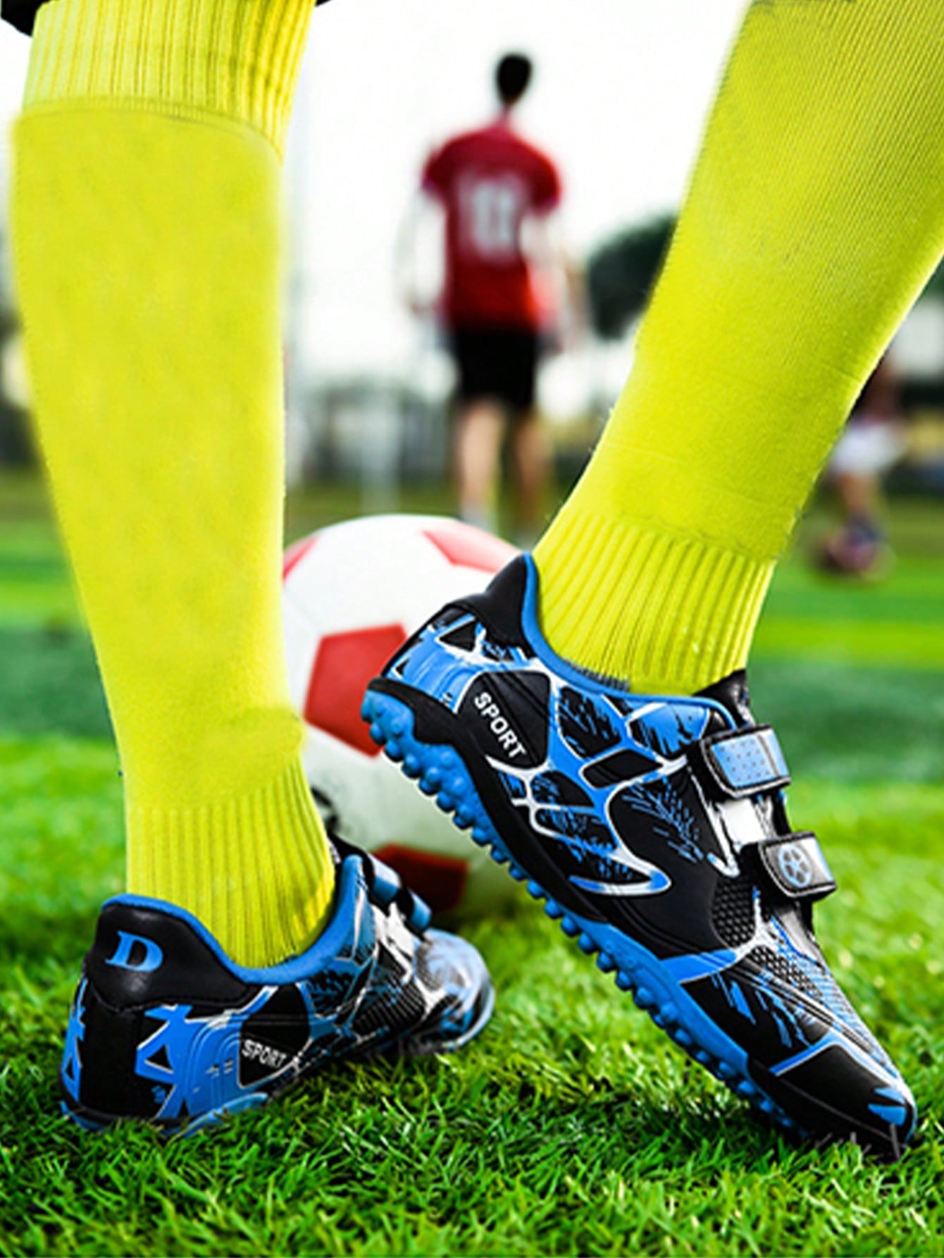 زوج واحد من أحذية كرة القدم للأطفال مع مسامير مضادة للانزلاق من مادة البولي يوريثين