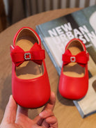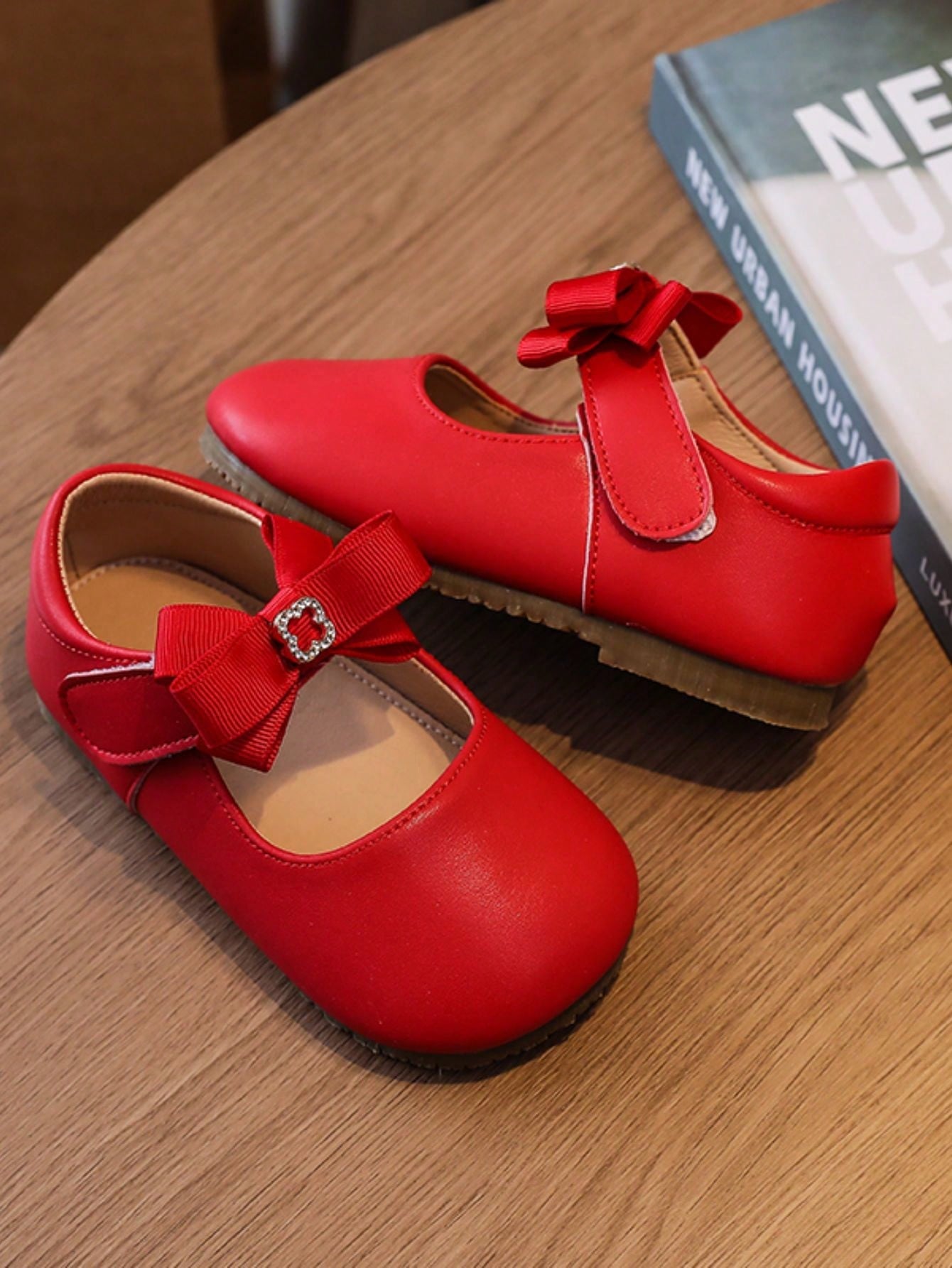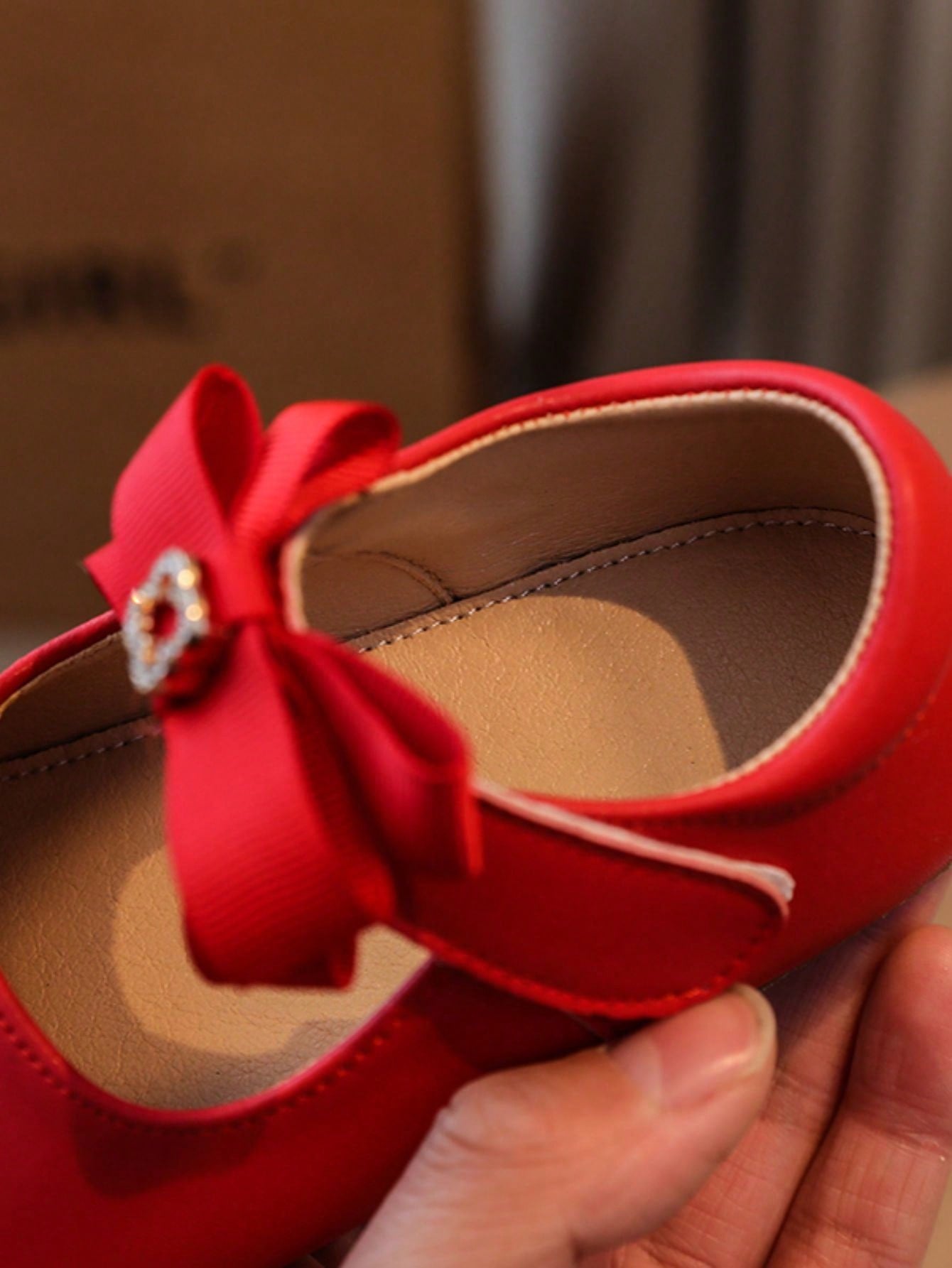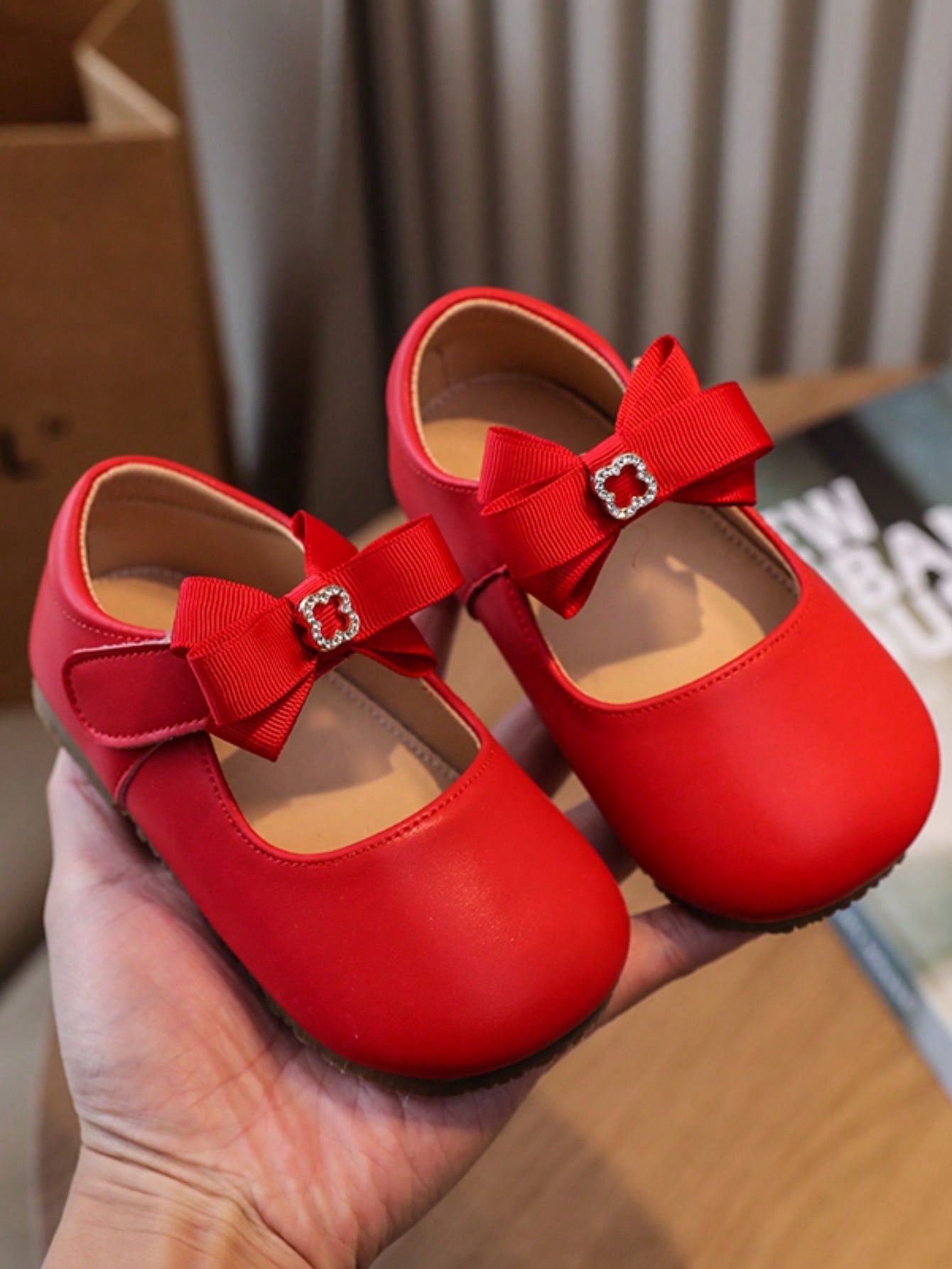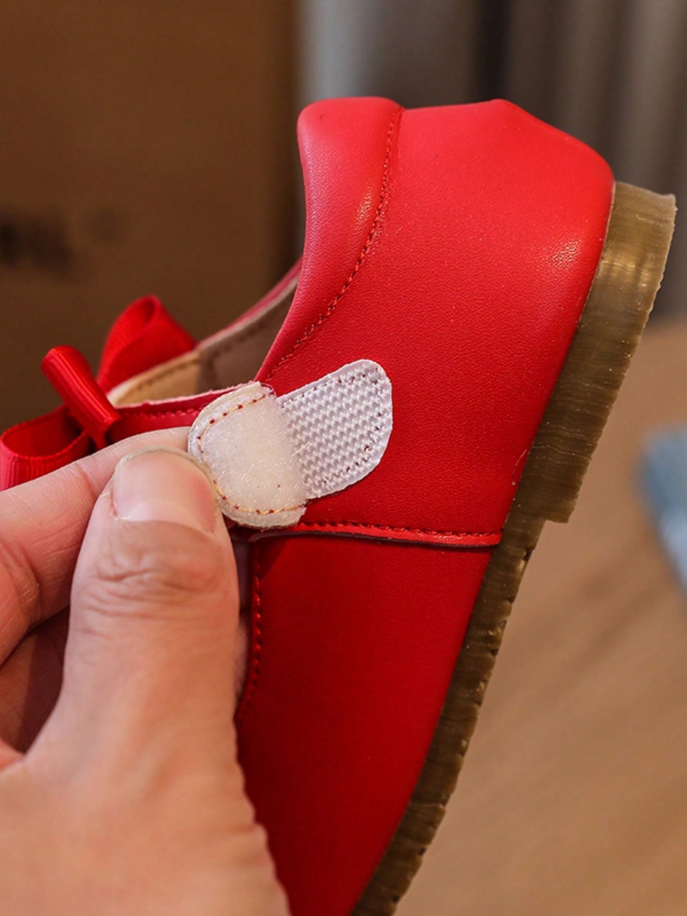kids 1 Pair Of Baby Girls Bow Decorative Hook And Loop Fashion Flats