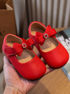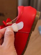 زوج واحد من أحذية مسطحة أنيقة مزخرفة بفيونكة وخطاف للفتيات الصغيرات