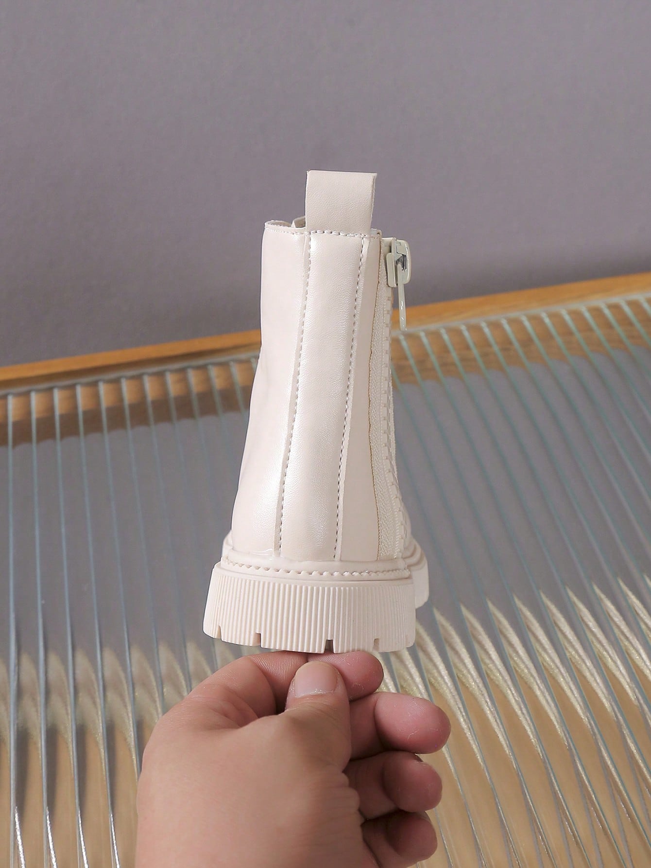 زوج واحد من أحذية الأطفال ذات اللون الموحد بسحاب جانبي بسيط