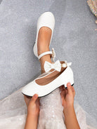 زوج واحد من أحذية الأميرة ذات الكعب العالي البيضاء متعددة الاستخدامات مع فيونكة وحزام للكاحل للبنات