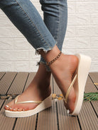 زوج واحد من شباشب بيج ذات كعب إسفيني وحزام كتف