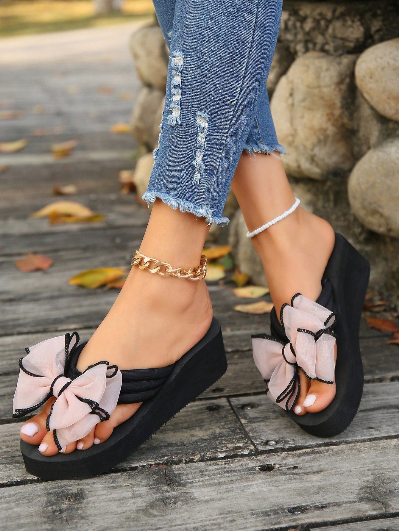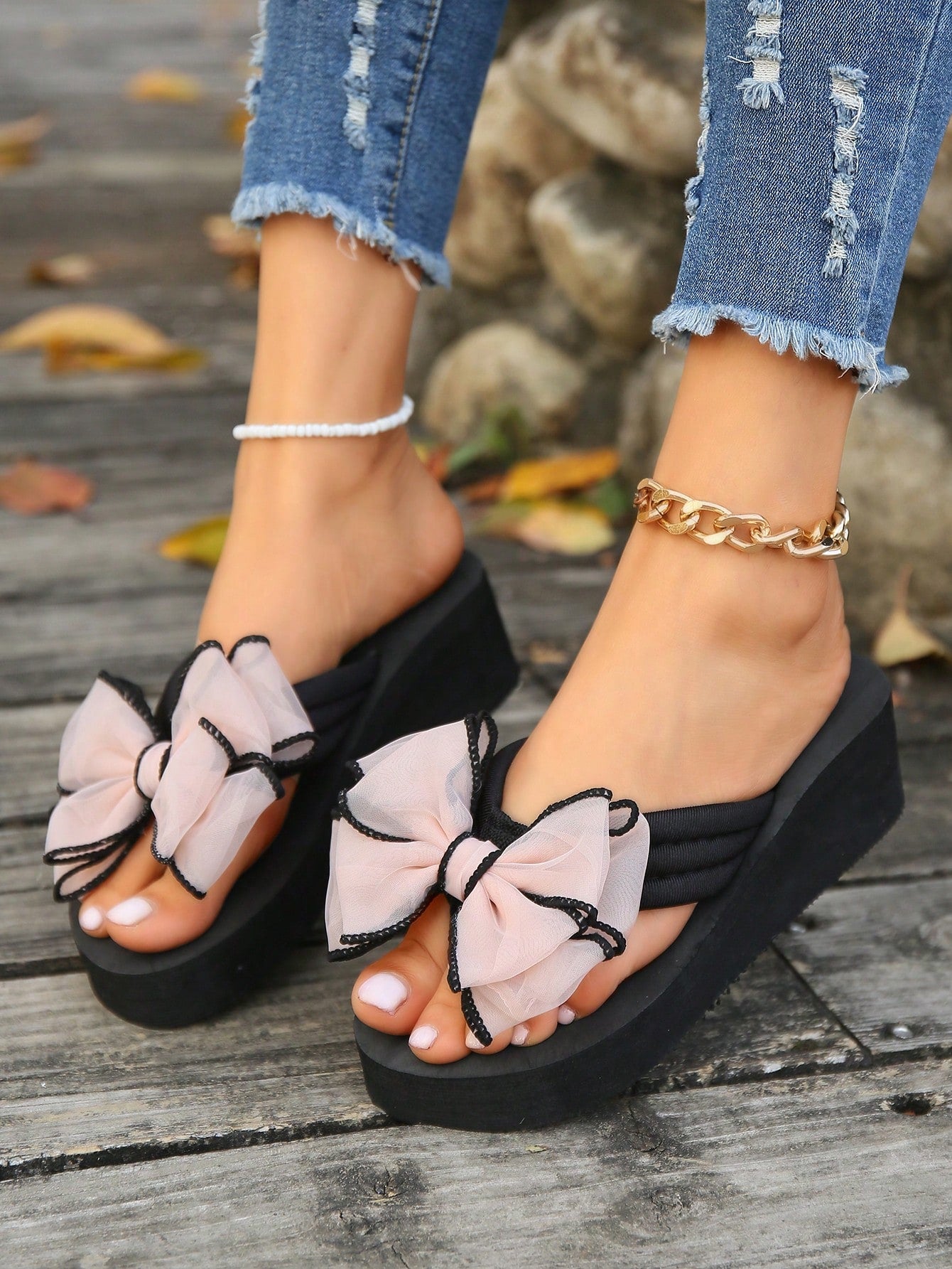 زوج واحد من الصنادل النسائية ذات النعل السميك على شكل فراشة