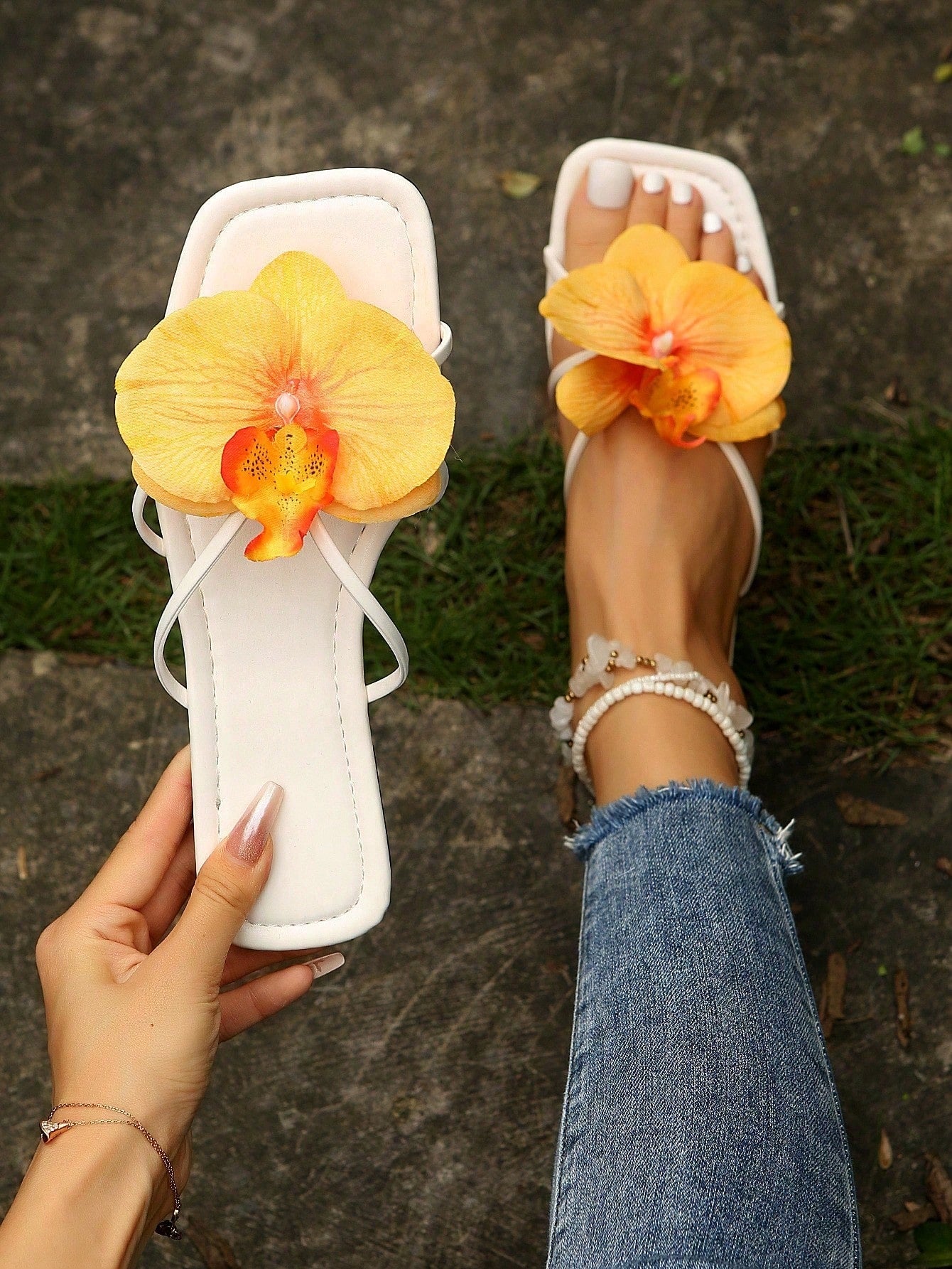 women 1 Pair Women's French Style Floral Strap Flat Sandals