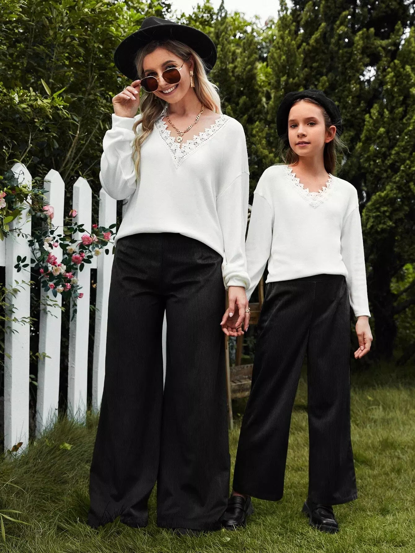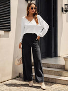 1 بنطلون بخصر عالي الخصر وسروال قصير واسع الساقين