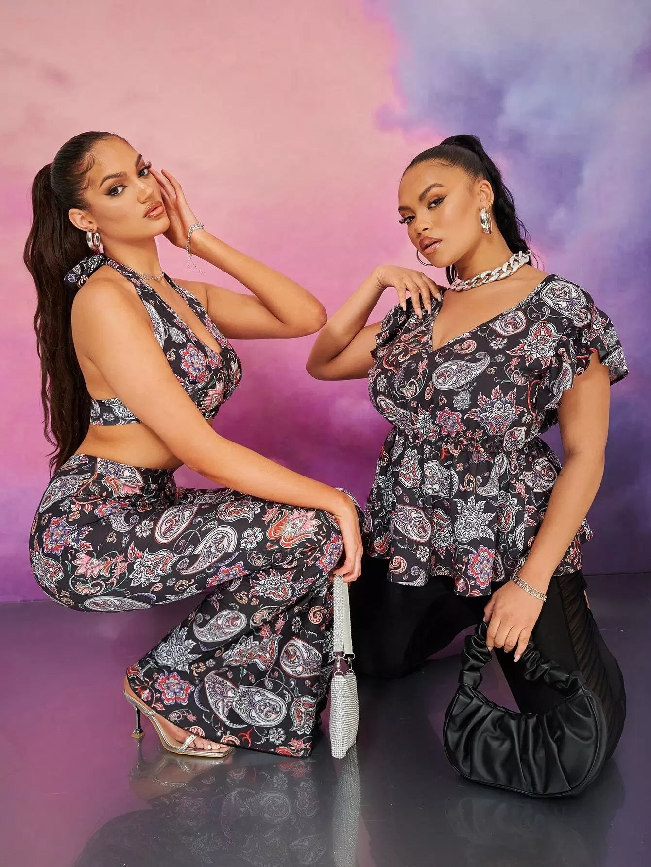 1 قطعة بنطلون واسع الساقين بطبعة بيزلي
