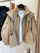 معطف واقٍ من المطر بلون موحد، مصنوع من قماش منسوج، مزود بجيوب برباط وأزرار أمامية.