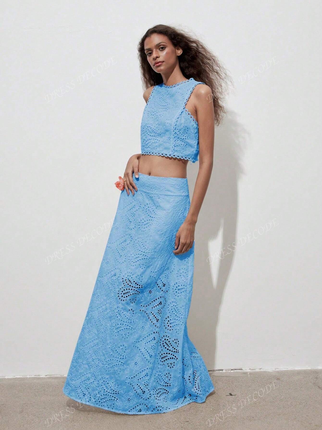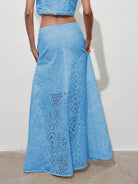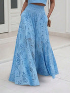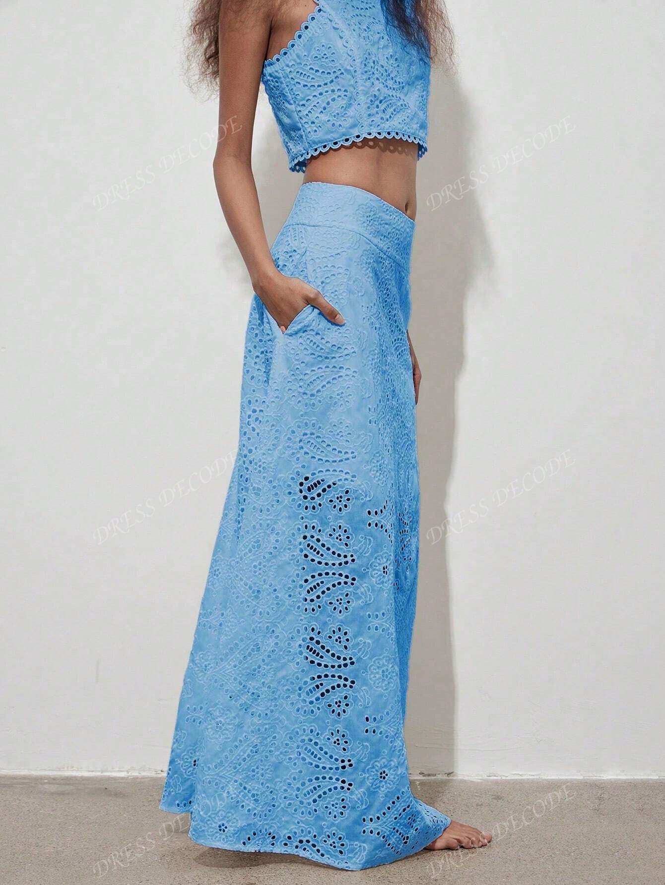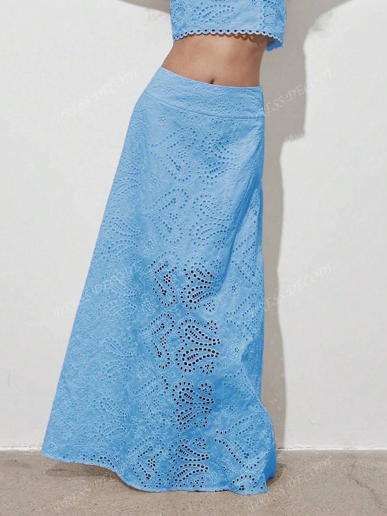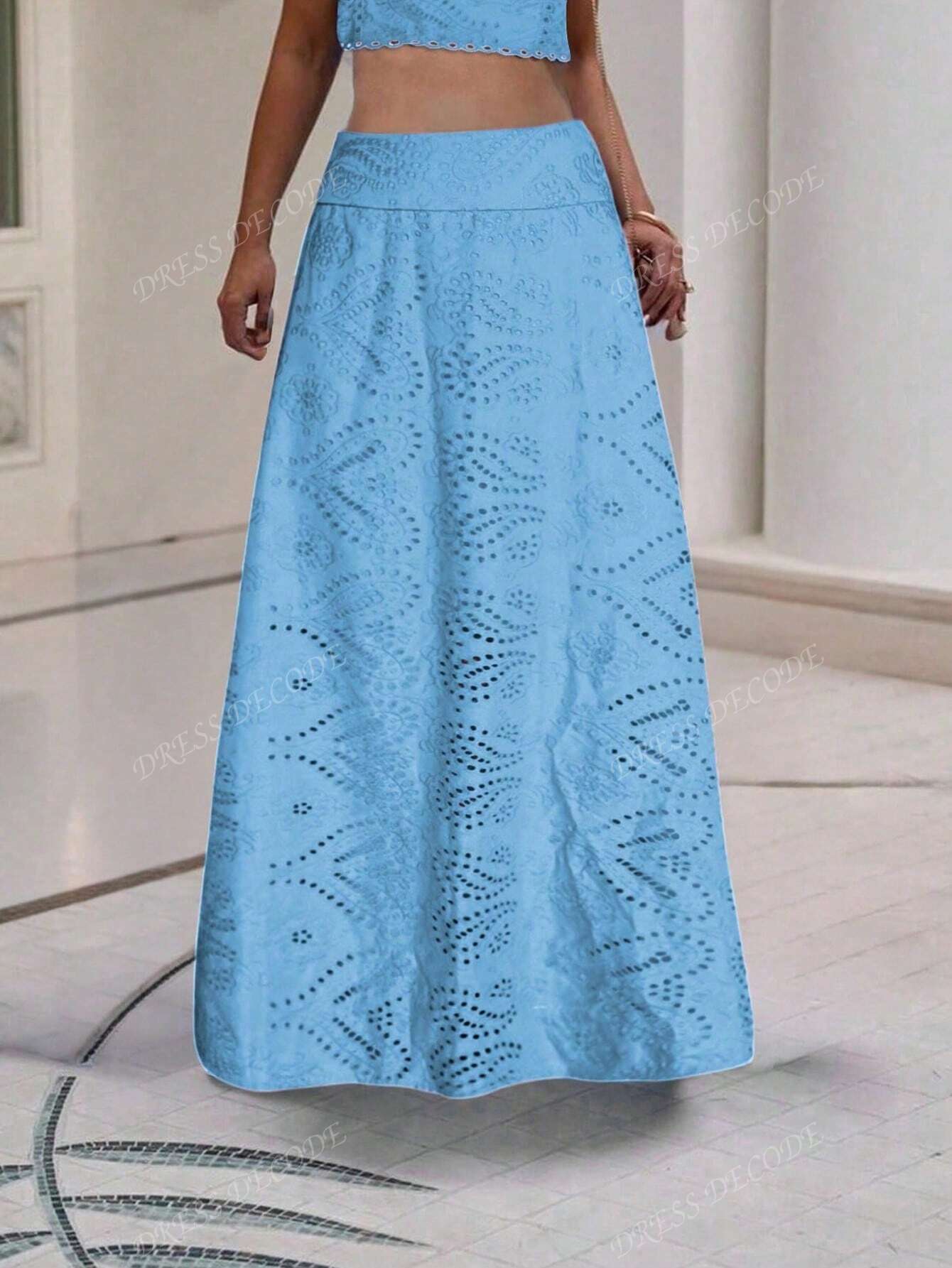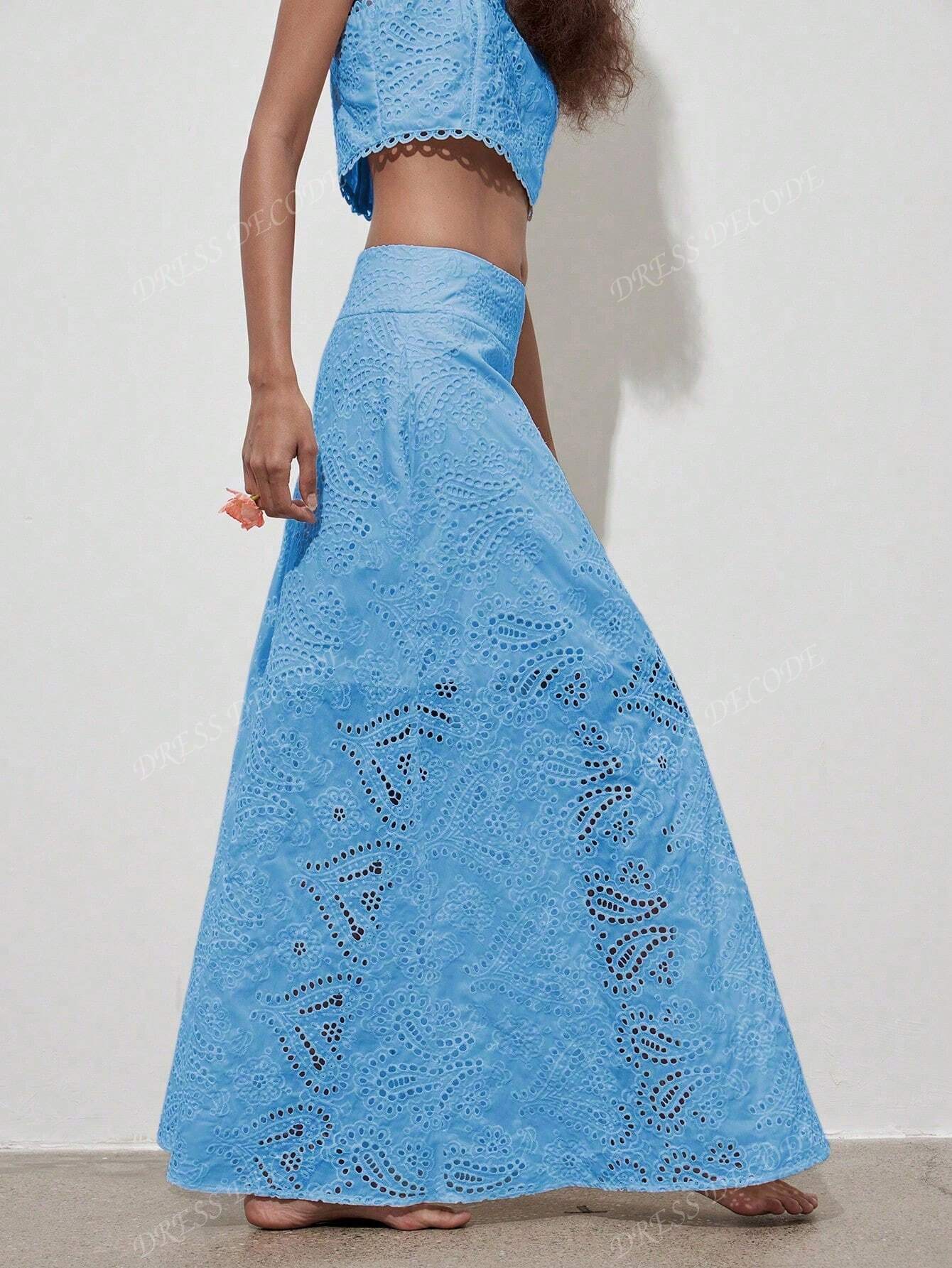 (1 Piece)Vintage Floral Hollow Out Full Embroidery A-Line Midi Skirt,Elegant And Refined Half Skirt,No