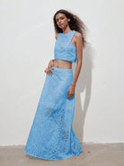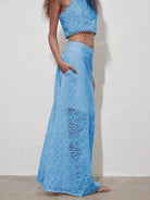 (قطعة واحدة) تنورة ميدي بتصميم عتيق مجوف من الزهور مطرزة بالكامل، تنورة نصفية أنيقة وراقية، بدون
