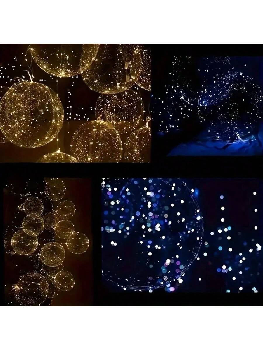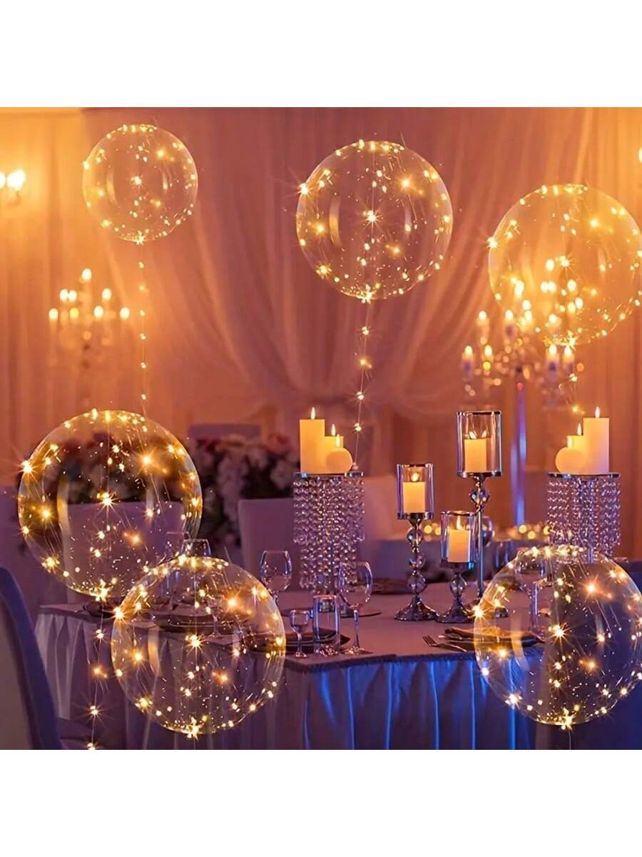 ١٠ مجموعات - بالونات فقاعية مقاس ٢٠ سم مزودة بإضاءة LED، كرات فقاعية شفافة متوهجة لحفلات الزفاف