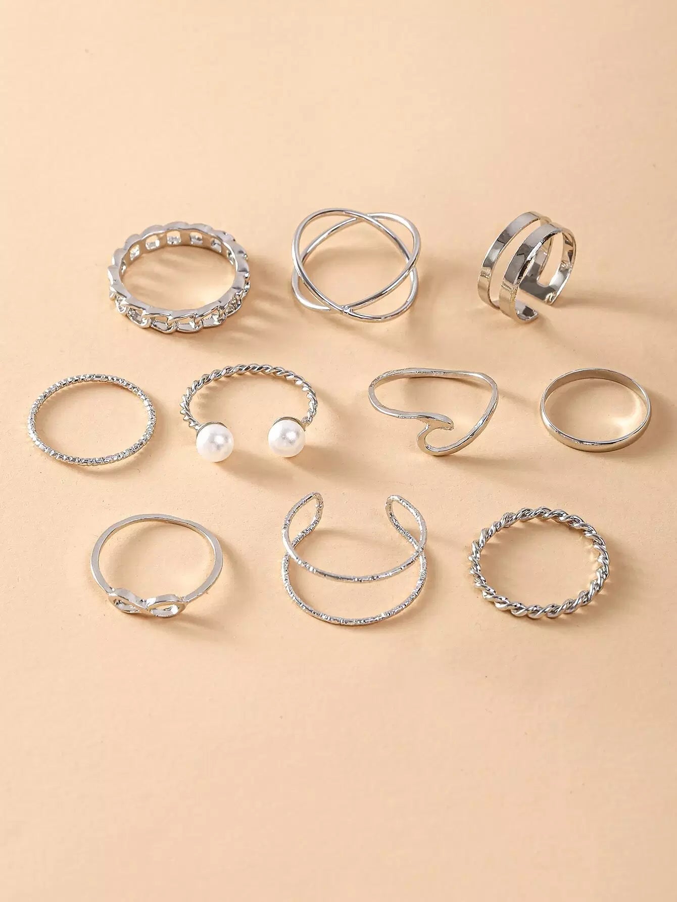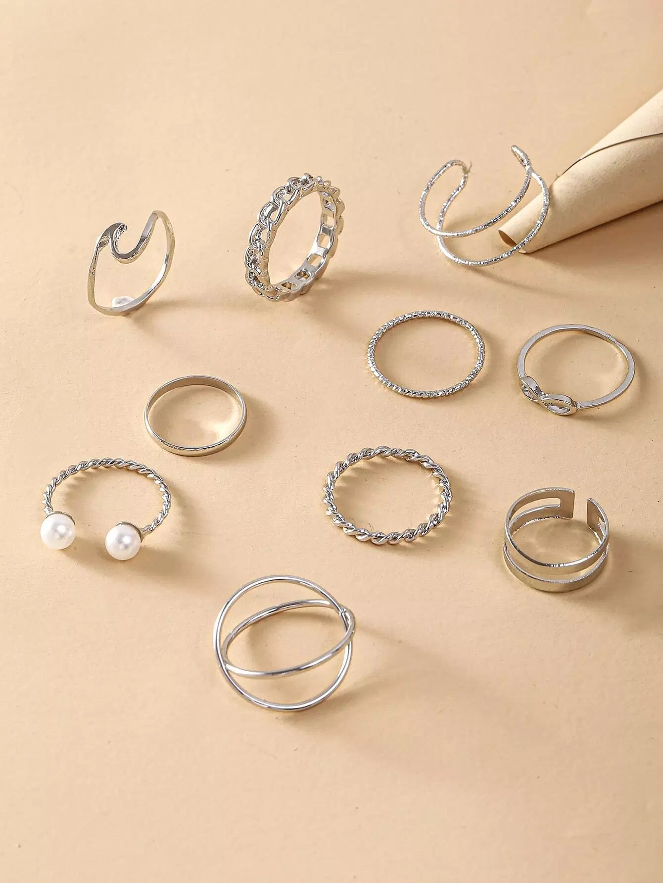 للنساء - 10 قطع من خواتم اللؤلؤ الصناعي