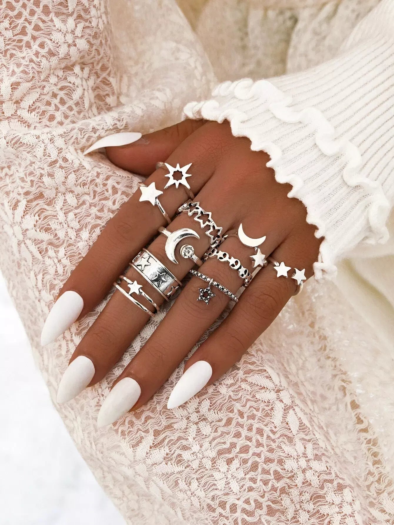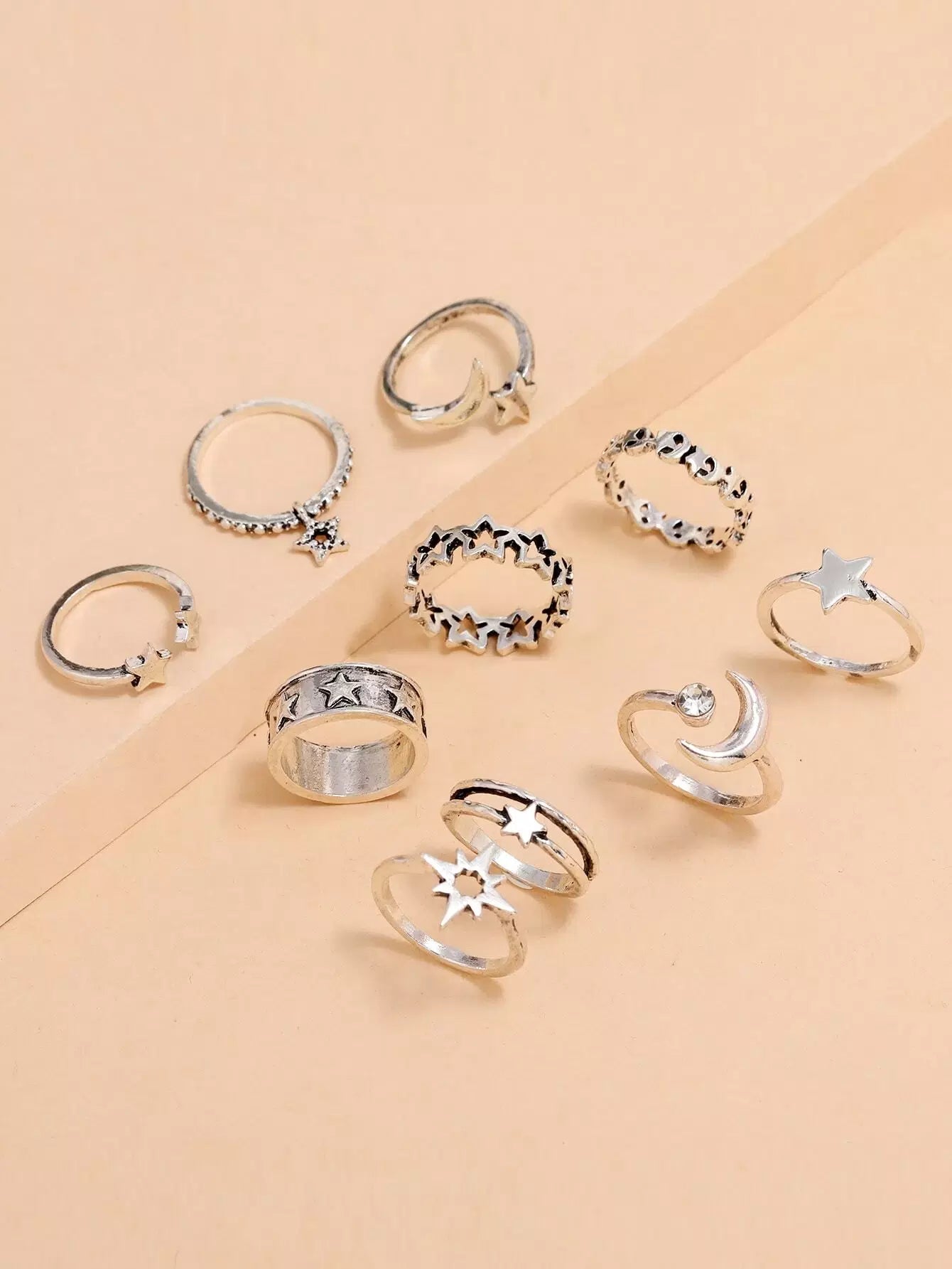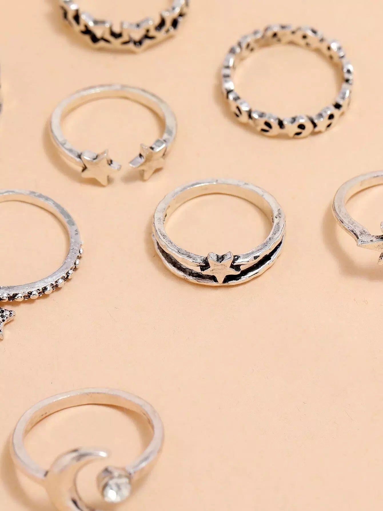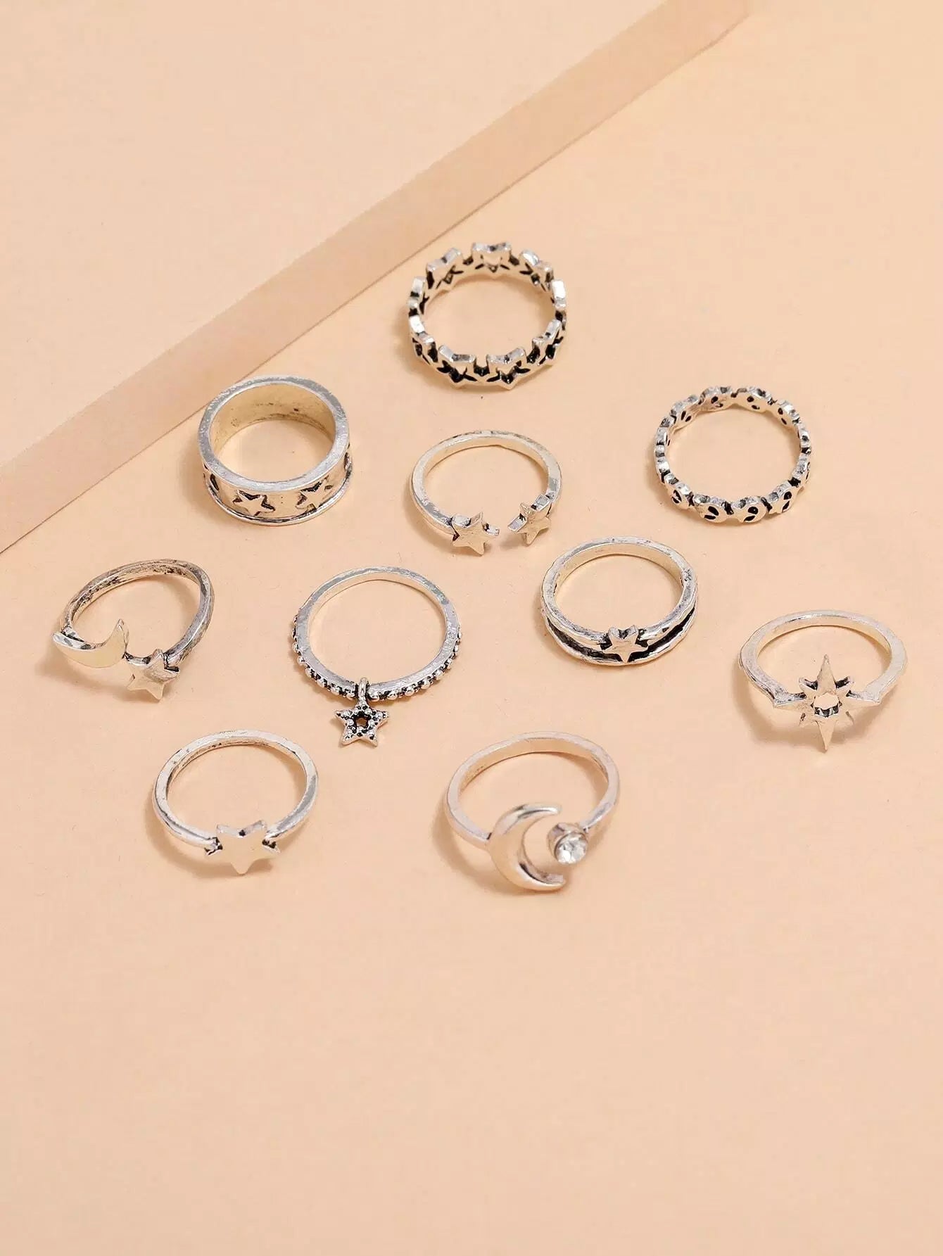 للنساء - 10 قطع من خواتم ديكور القمر والنجوم