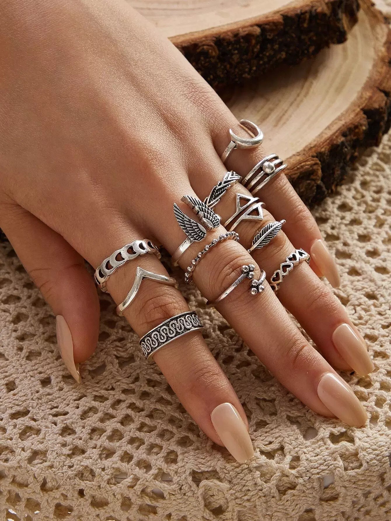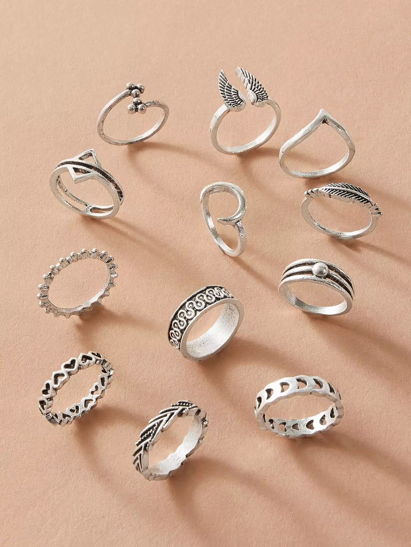 12 قطعة من الخواتم المجوفة بتصميم قلب