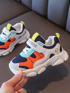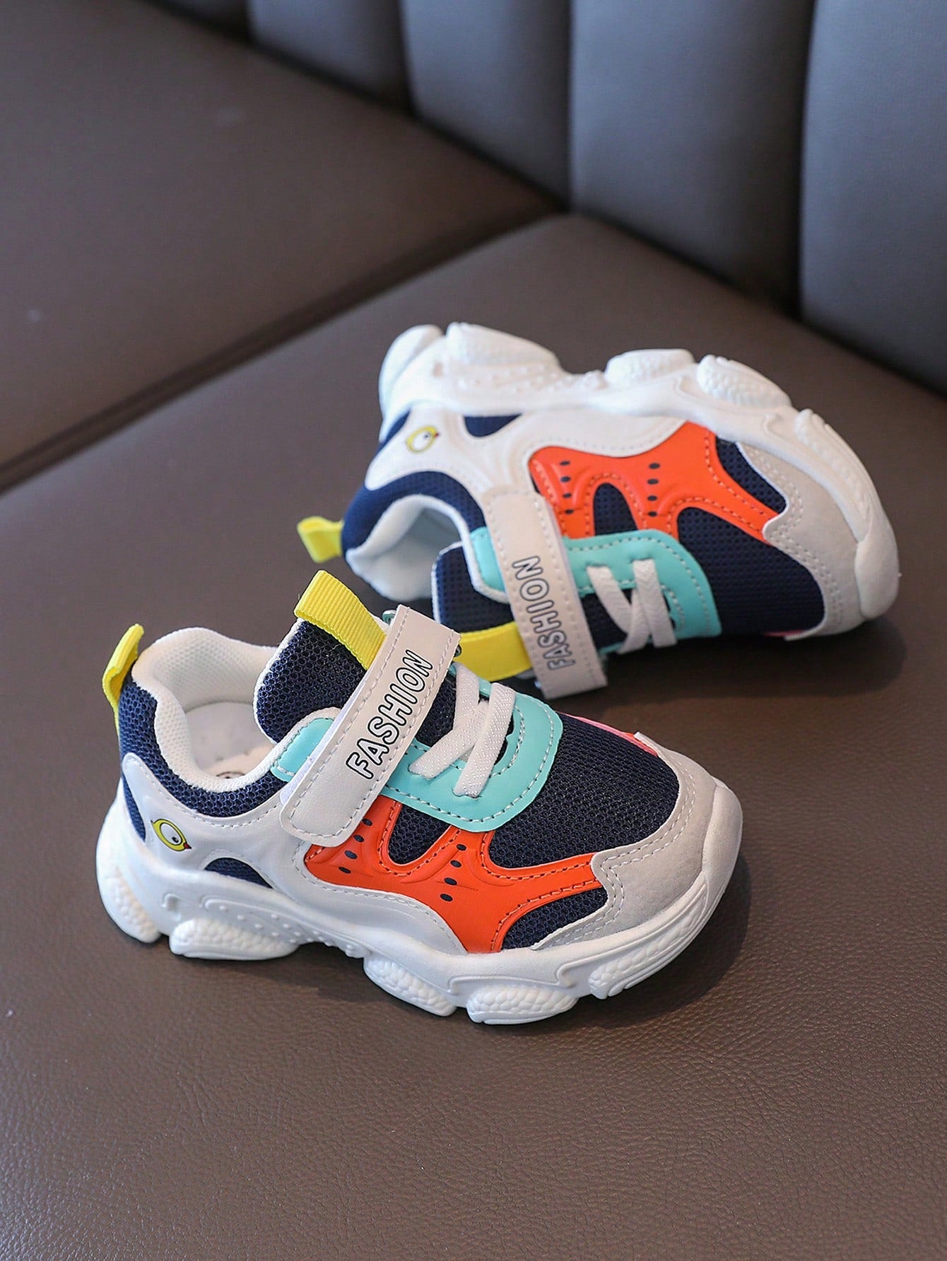 kids 1pair Boys Color Block Mesh Panel Design Hook-and-loop Fastener Breathable Sneakers For Outdoor