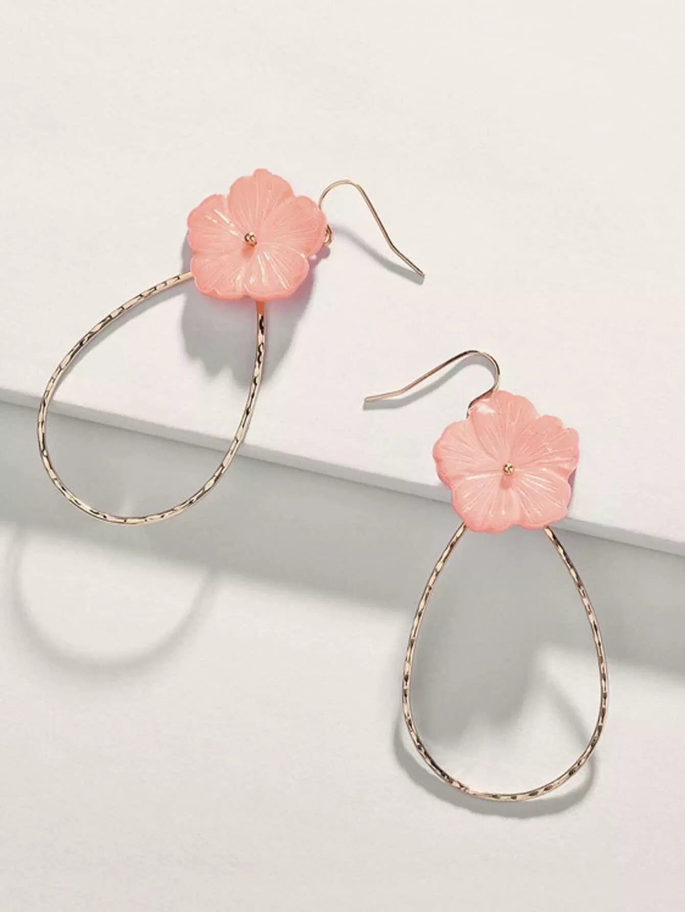 النساء - زوج واحد من أقراط قطرة الماء المزخرفة بالزهور