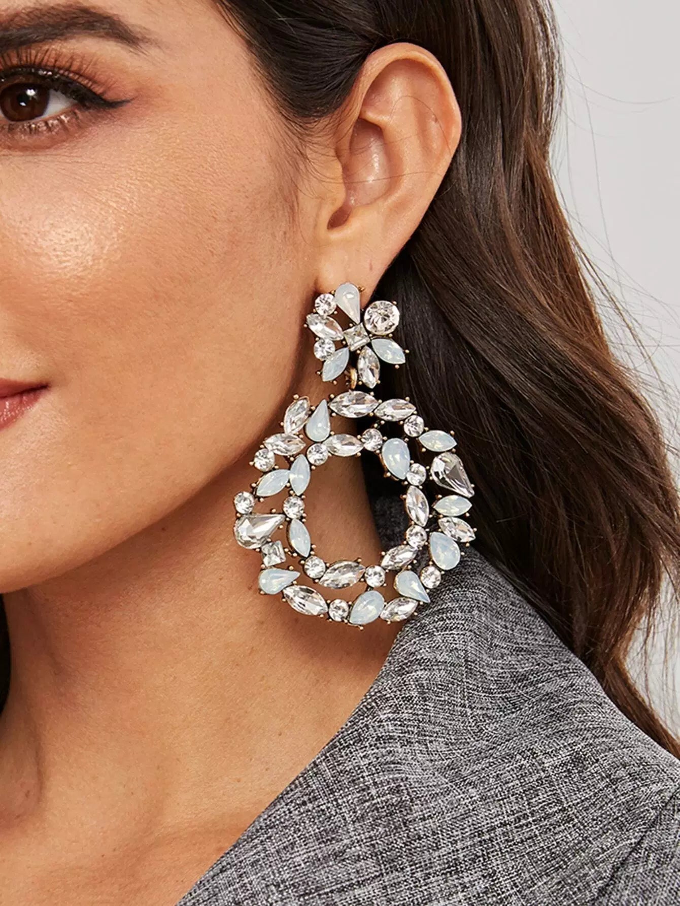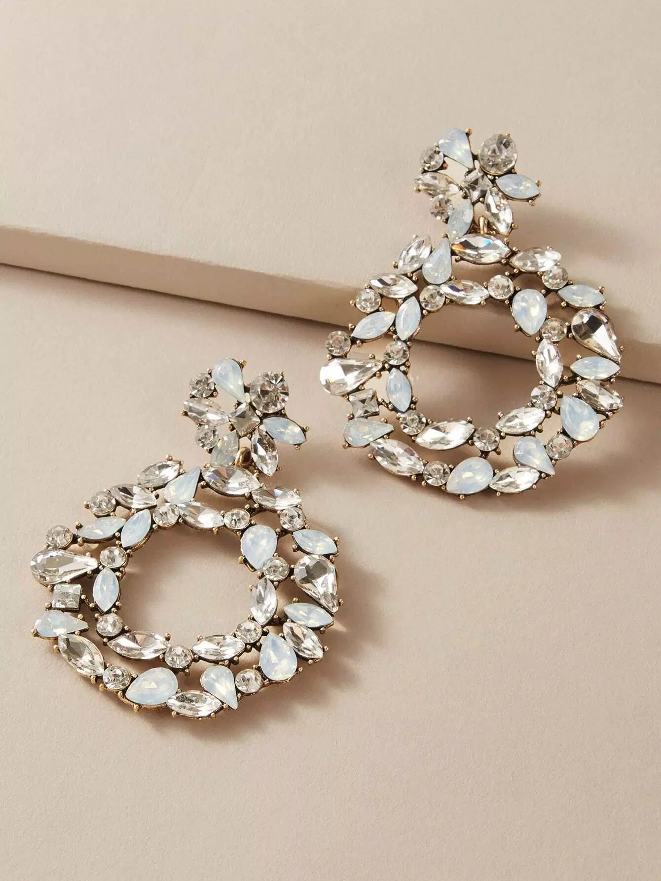 زوج واحد من الأقراط المتدلية المستديرة المرصعة بالأحجار الكريمة