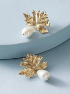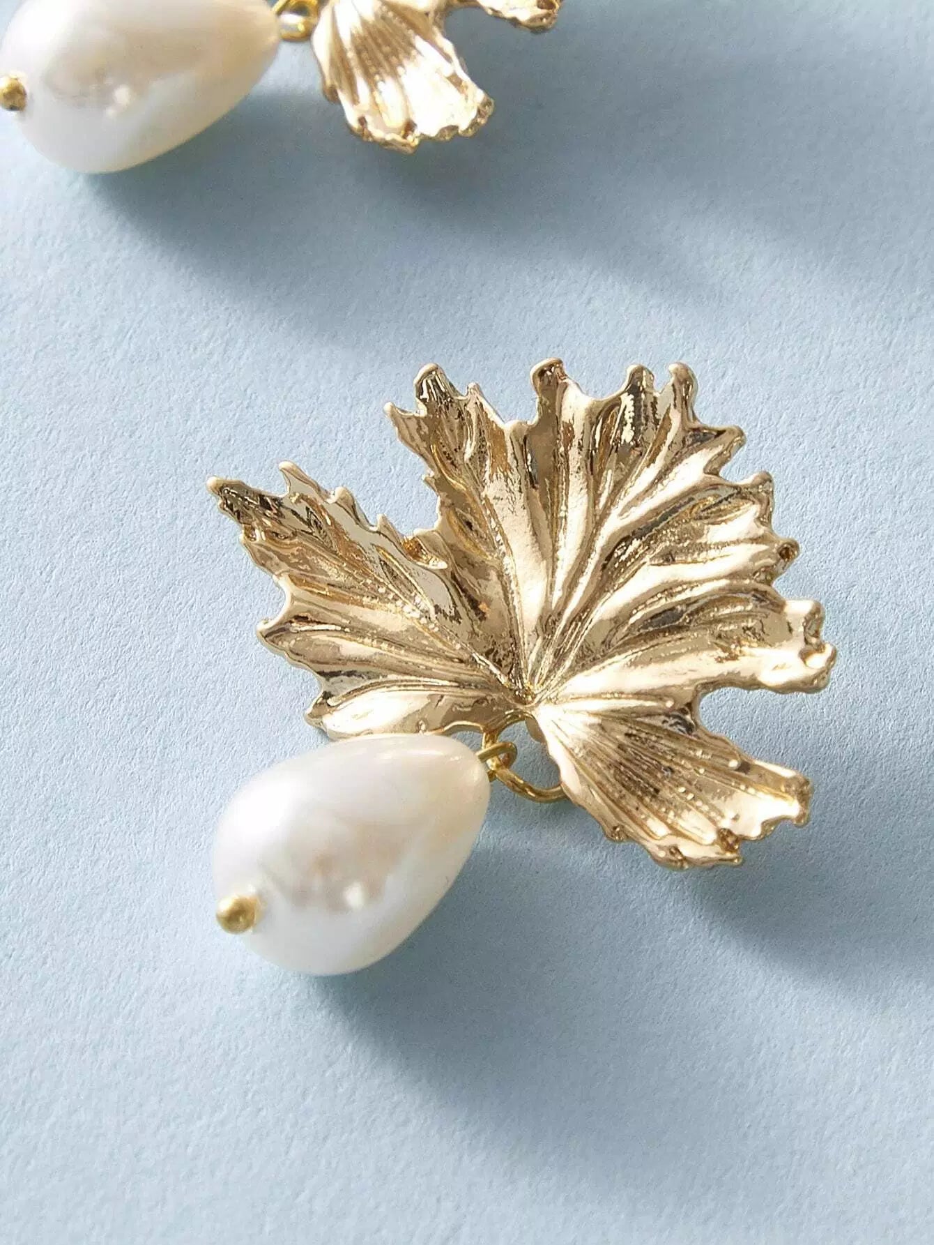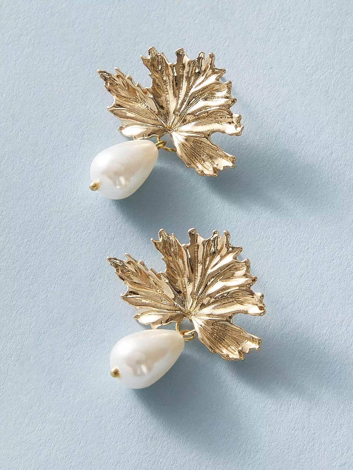 زوج واحد من الأقراط المتدلية المصنوعة من اللؤلؤ الصناعي المزخرف على شكل خشب القيقب