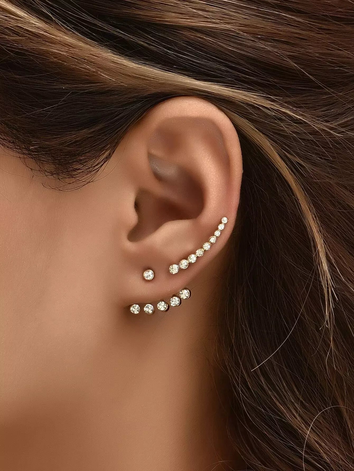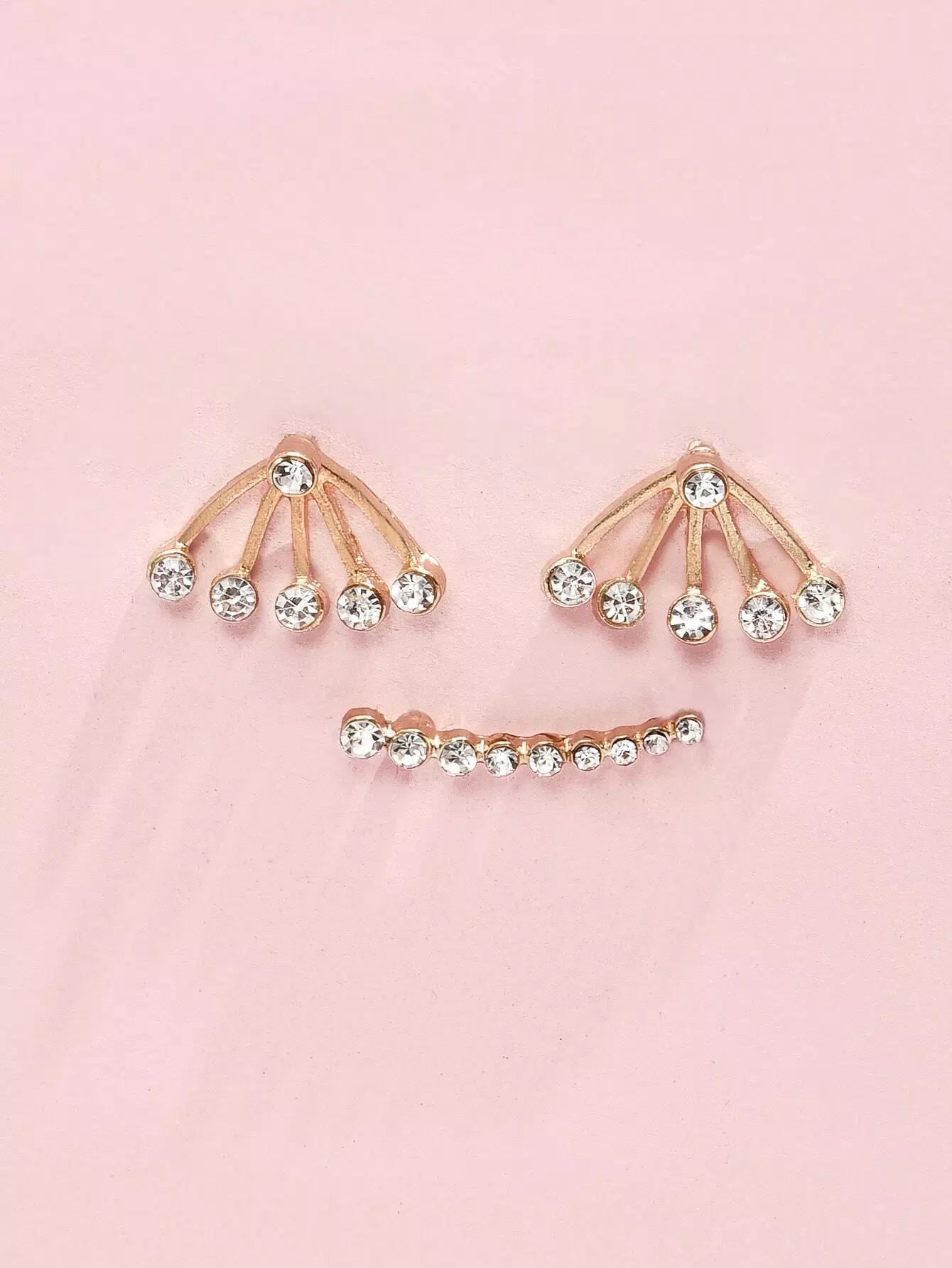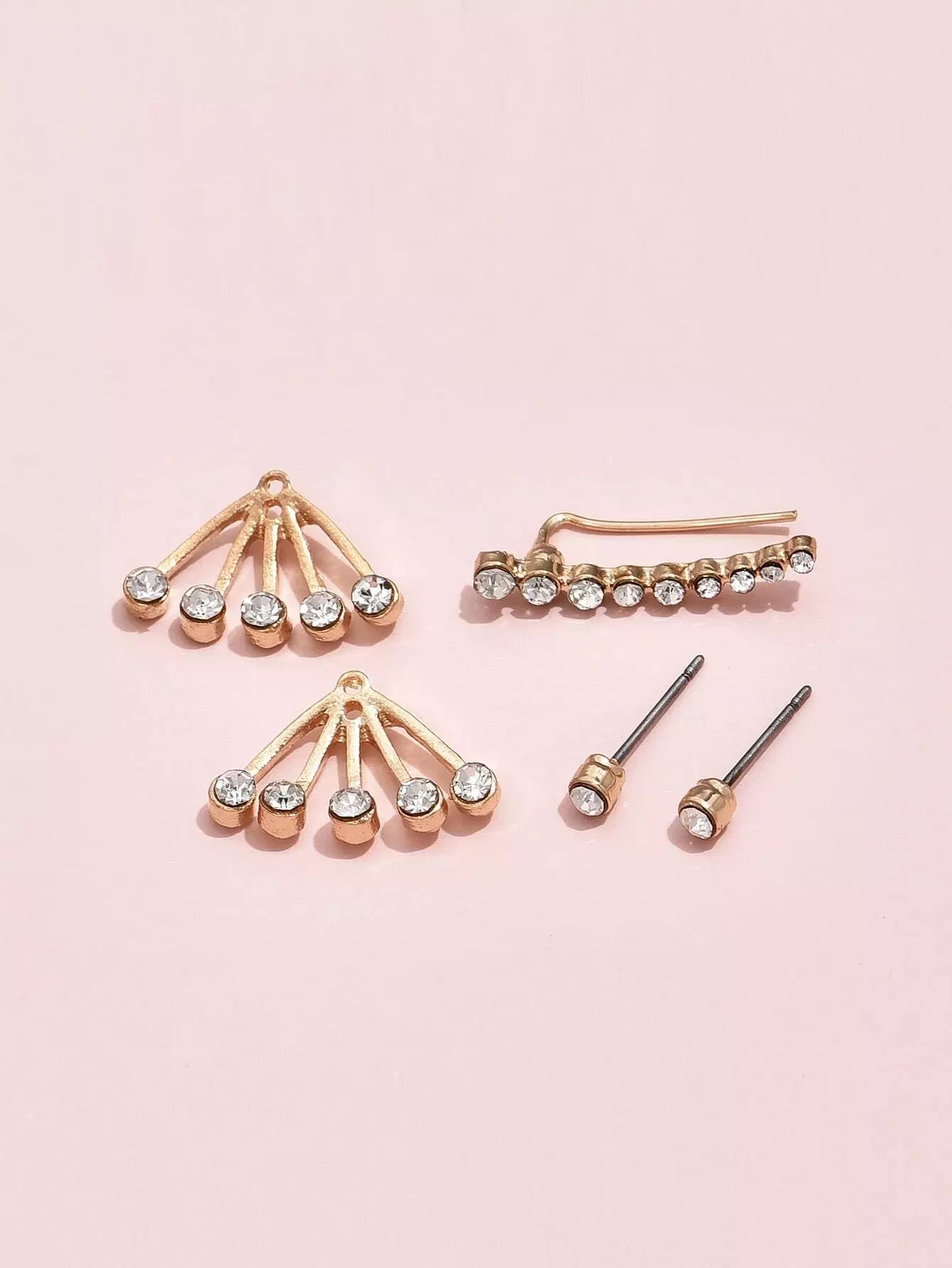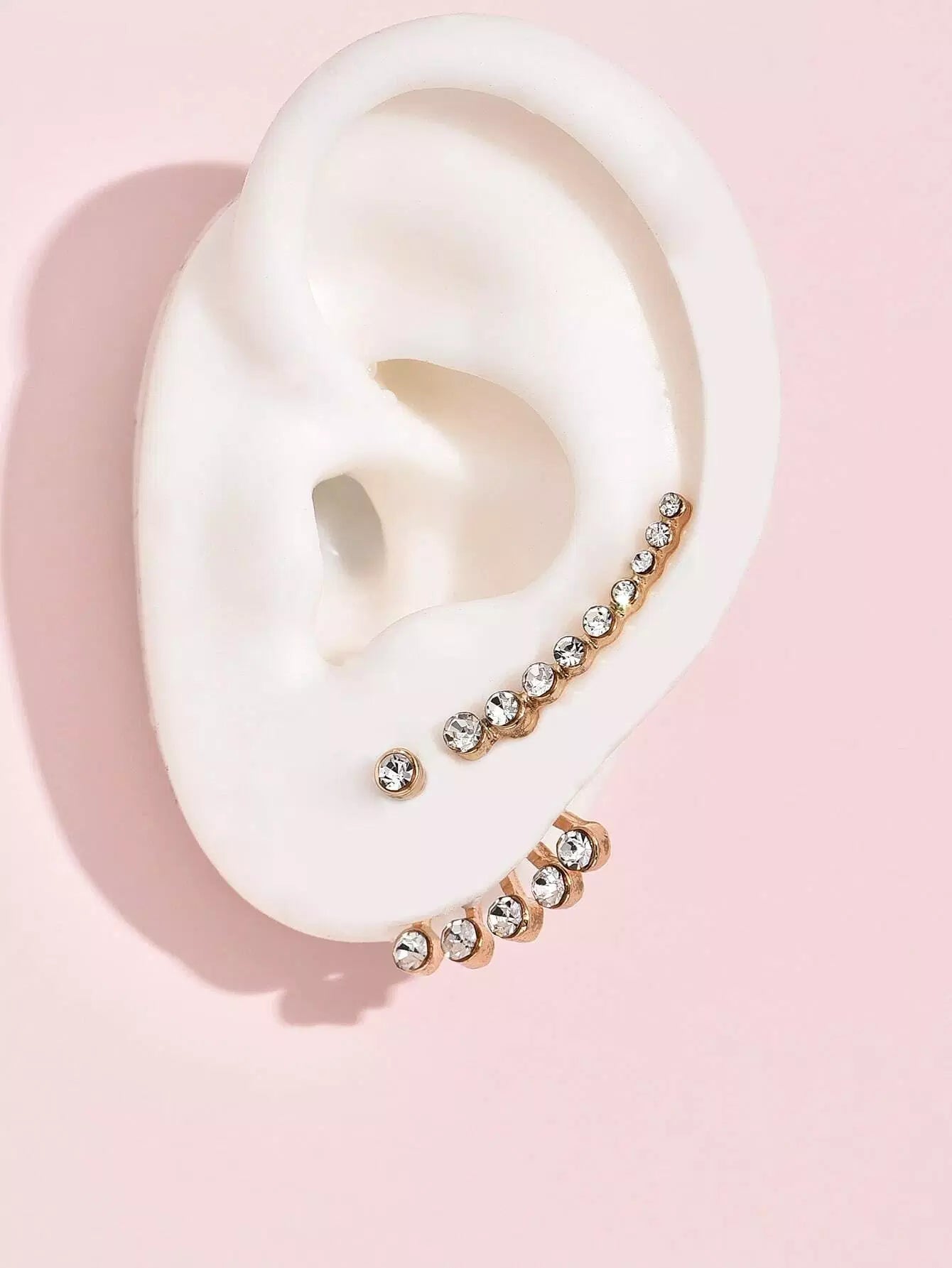 للنساء - زوج واحد من سترات القرط المزخرفة بحجر الراين وقطعة واحدة من أساور الأذن