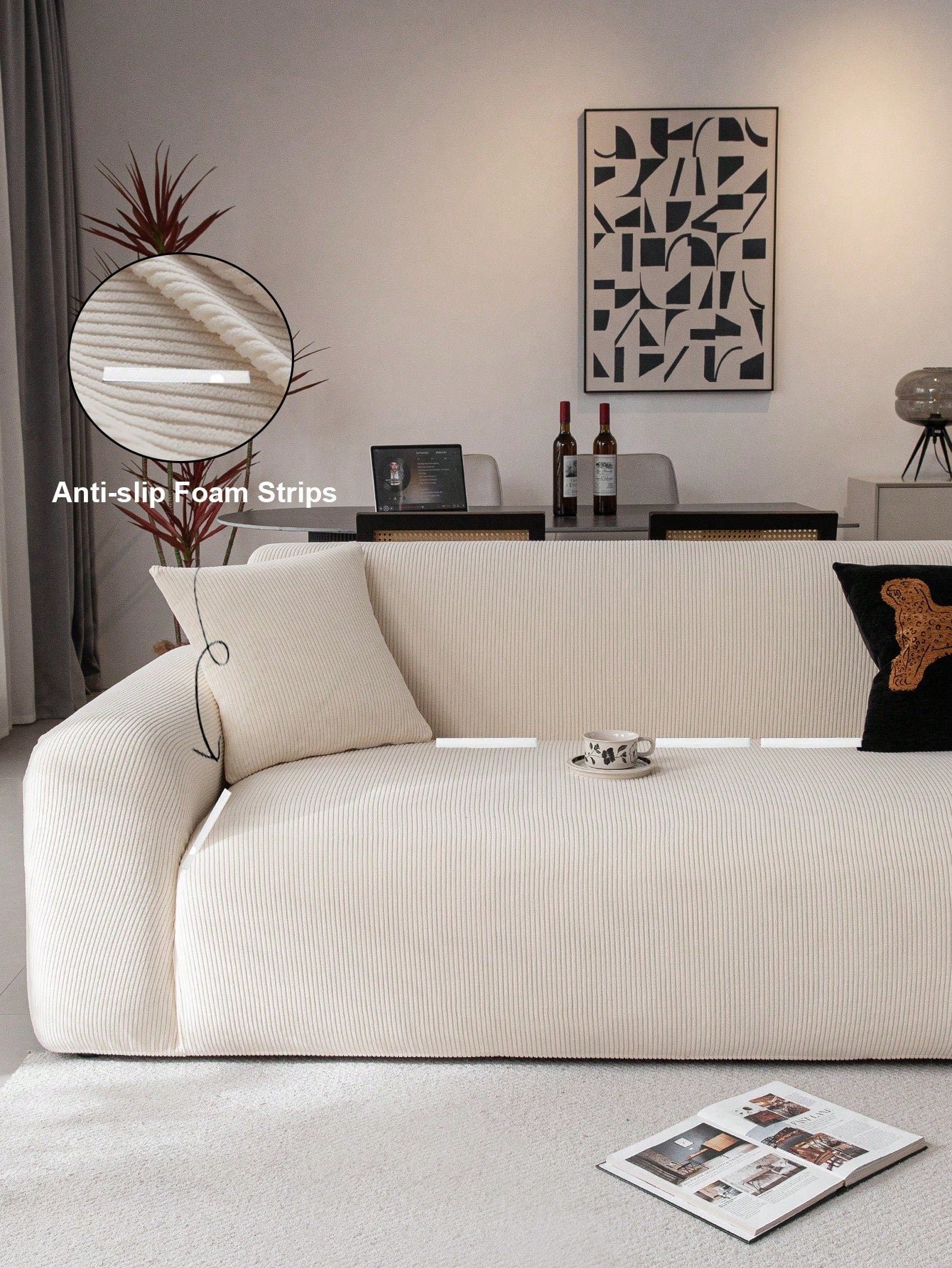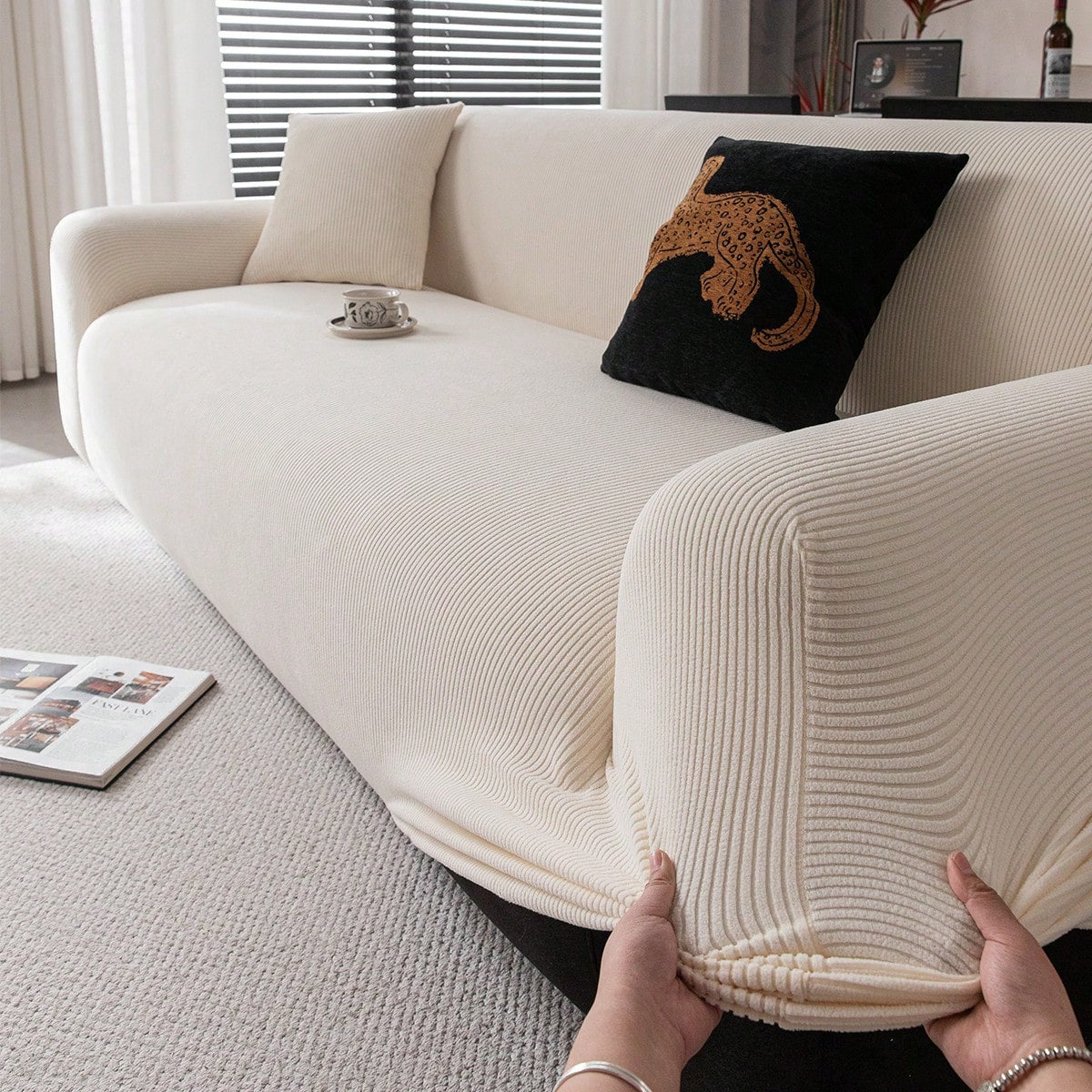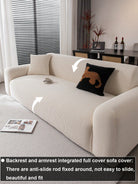 غطاء أريكة ثلاثي الأبعاد متعدد الوظائف، قطعة واحدة، يغطي الأريكة بالكامل، لون موحد، تصميم بنمط هندسي.