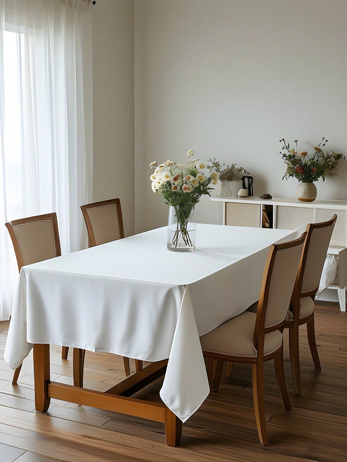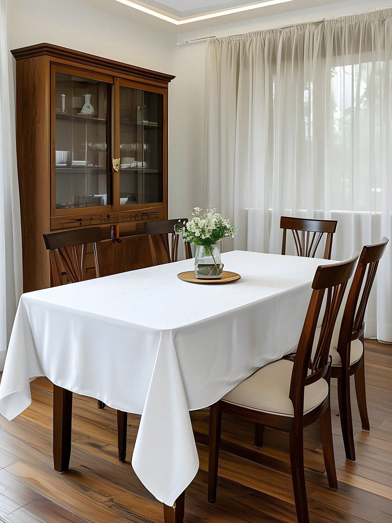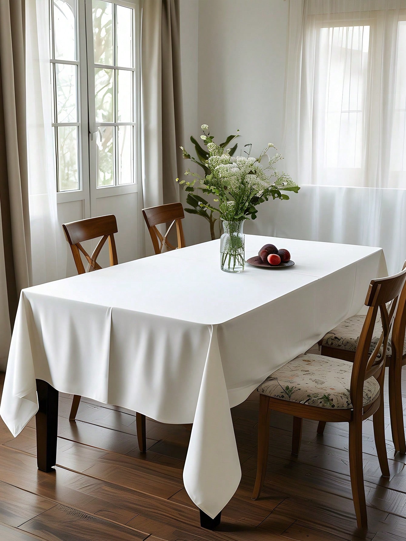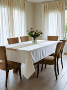 قطعة واحدة - غطاء طاولة مستطيل أبيض مناسب، مقاس 59 × 102.3 بوصة