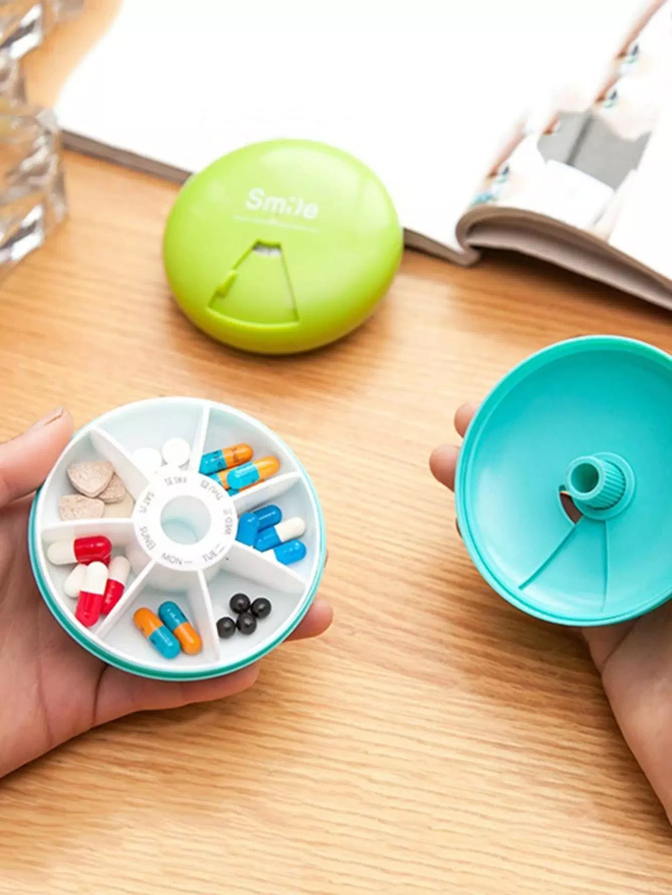1 قطعة 7 علبة تخزين حبوب دوائية دائرية 7 شبكية