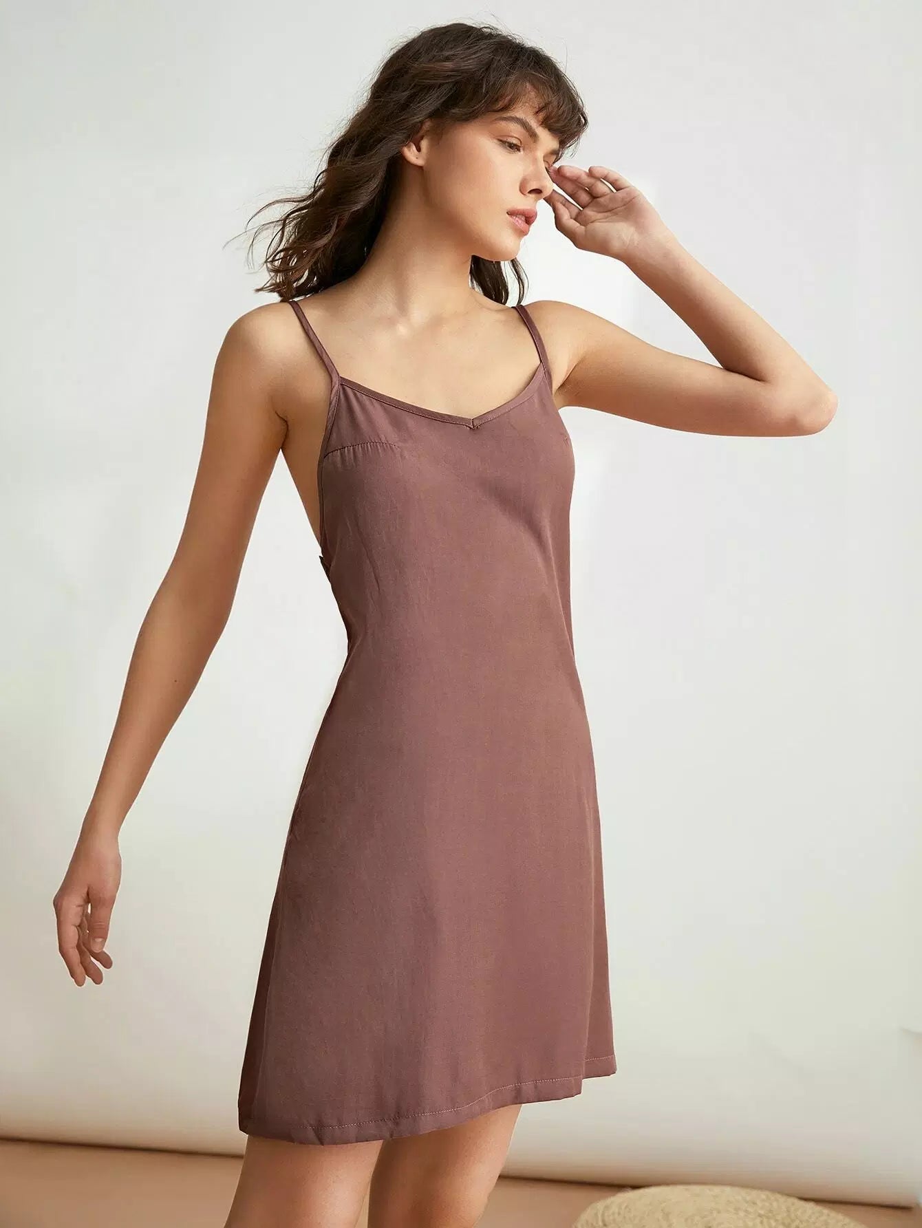 فستان نوم سادة بدون ظهر قطعة واحدة