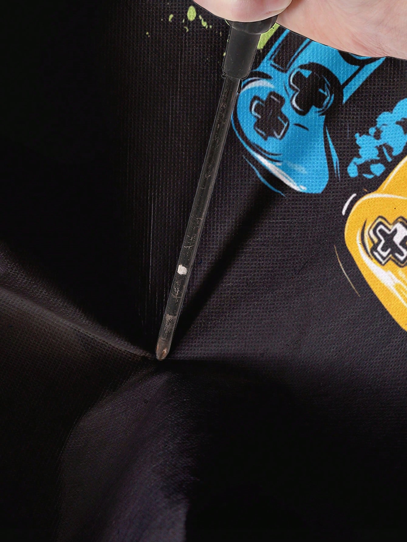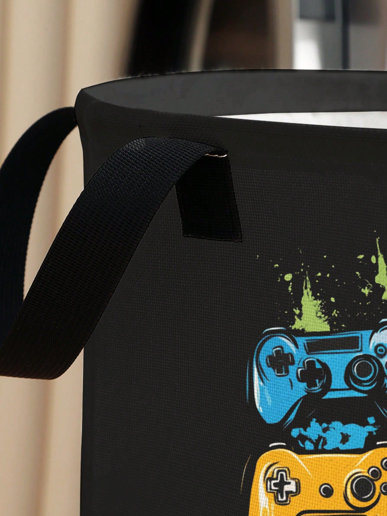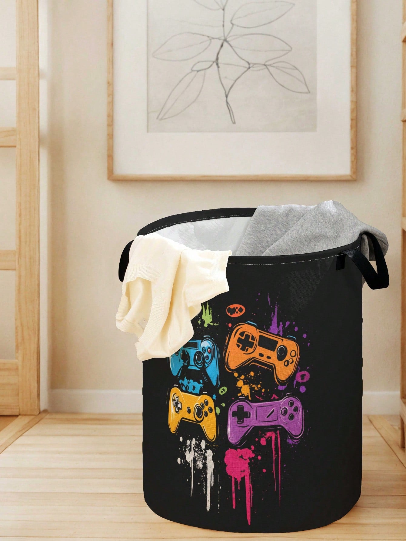 سلة تخزين دائرية قابلة للطي ذات سعة كبيرة ومقبض، مزينة برسومات كرتونية لأجهزة الألعاب.