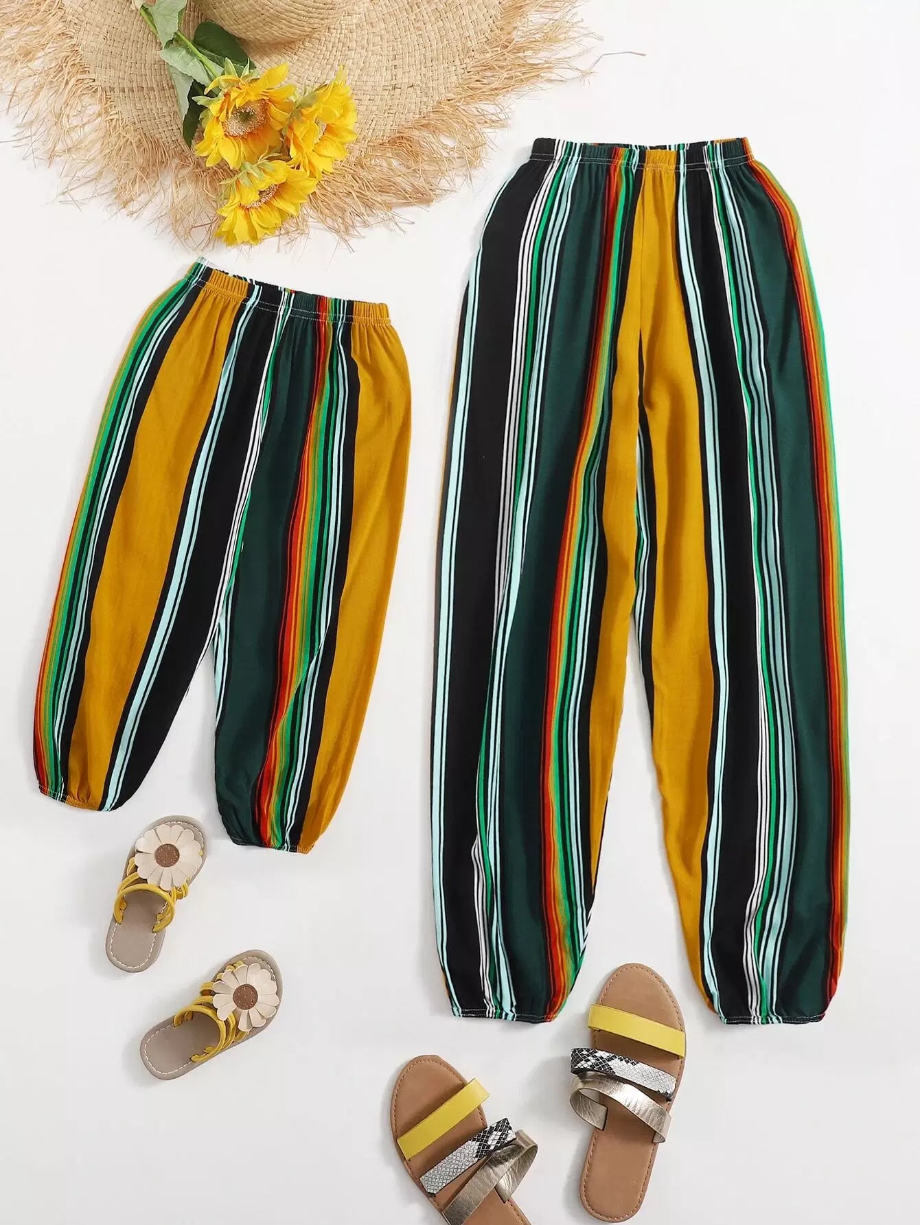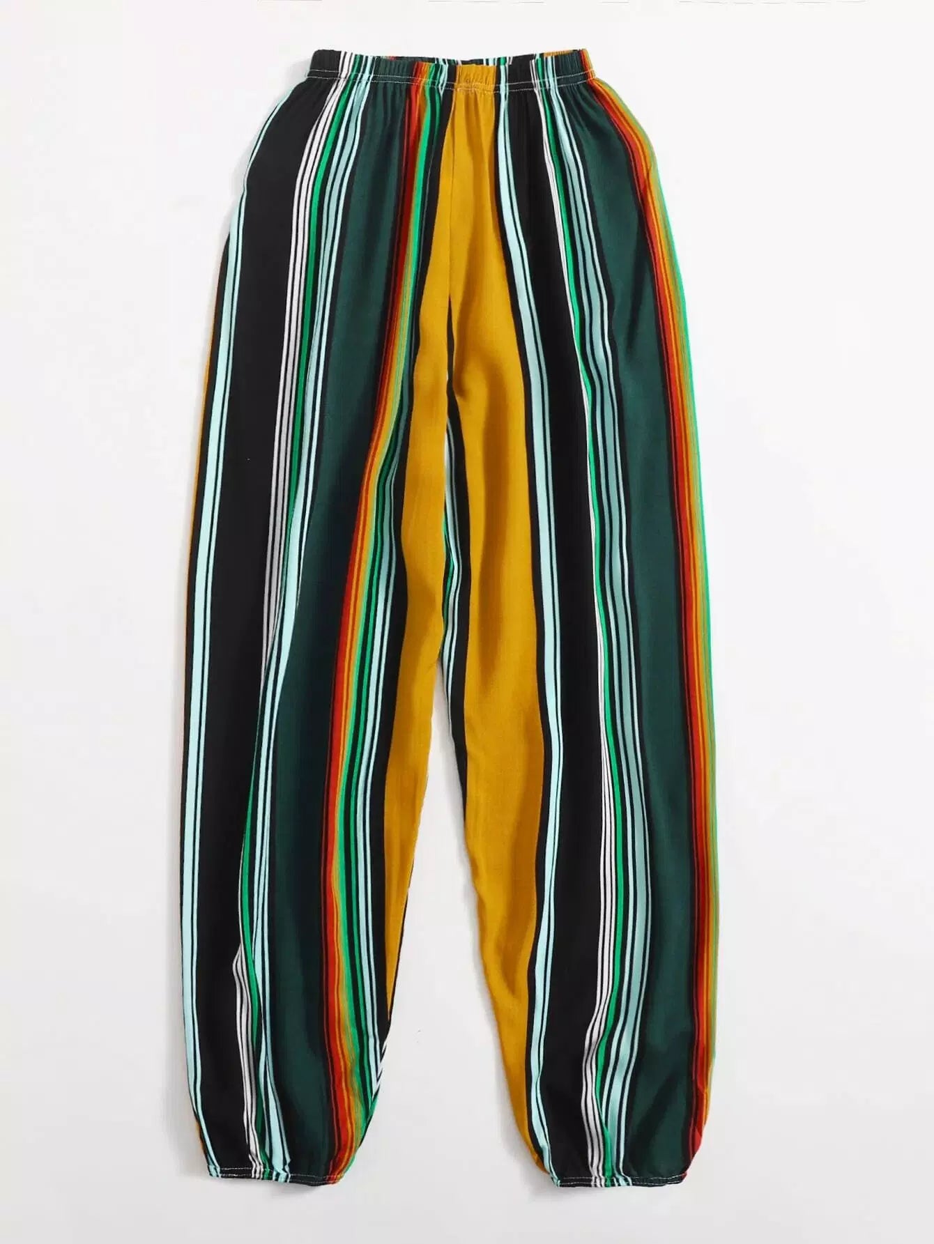 1 قطعة واحدة بنطلون مخطط بطبعة ملونة مخططة ضيقة