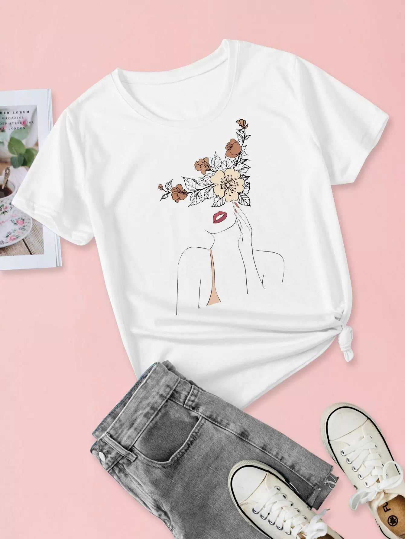 1 قطعة تي شيرت مطبوع عليه شكل وزهور