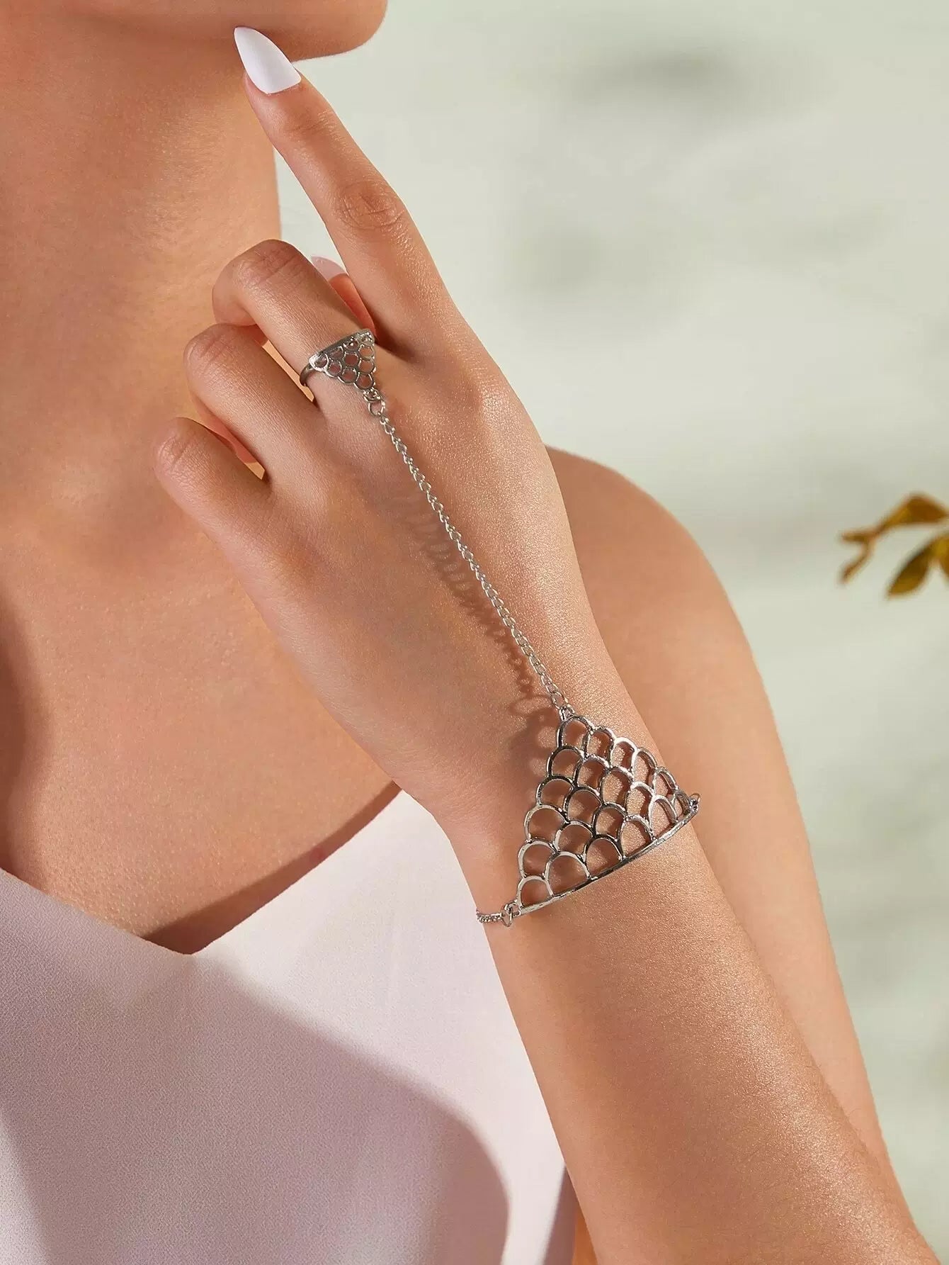 للنساء - قطعة واحدة من سوار سلسلة بحلقة الإصبع