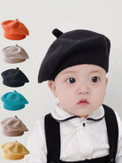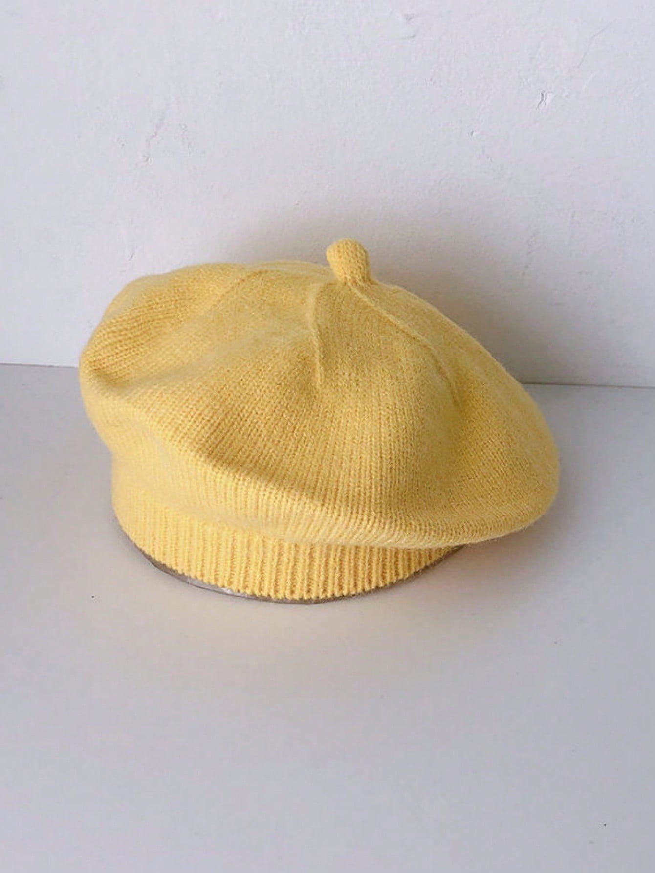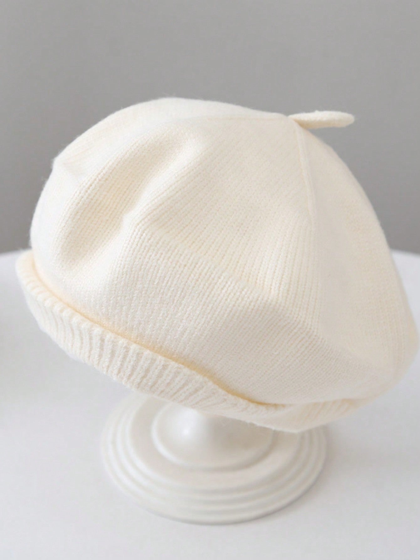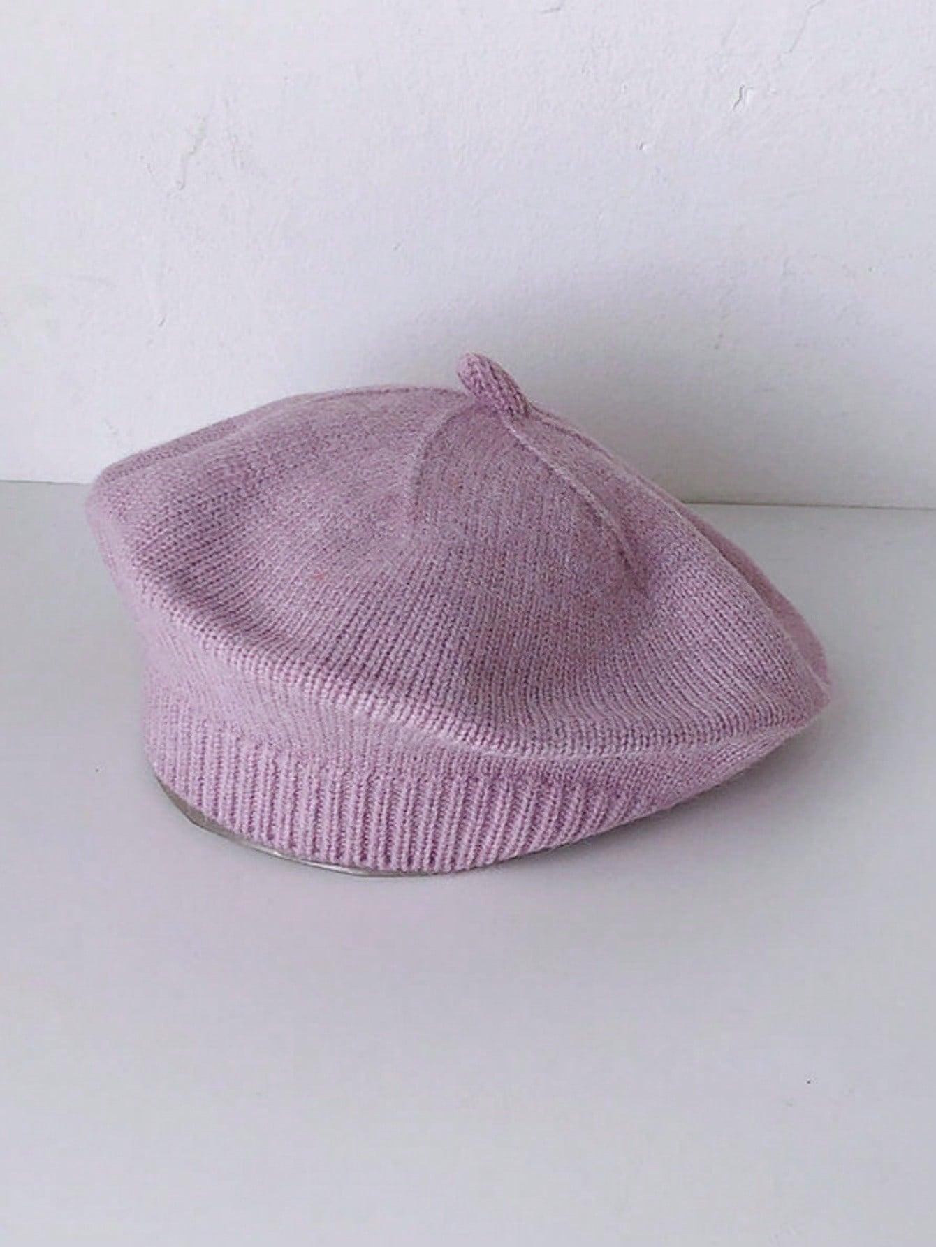 قبعة بيريه محبوكة قطعة واحدة - لون حلوى، مناسبة للجنسين، للأطفال الرضع والصغار، مناسبة لفصلي الخريف والشتاء، قبعة بيريه محبوكة متعددة الاستخدامات