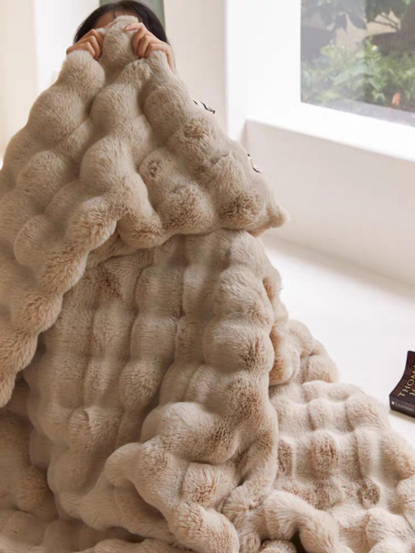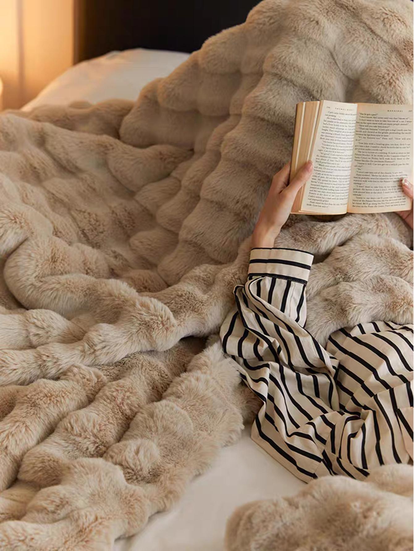 بطانية فاخرة من الفرو الصناعي الناعم - بطانية سميكة مزدوجة الطبقات ناعمة ورقيقة بملمس يشبه السحاب