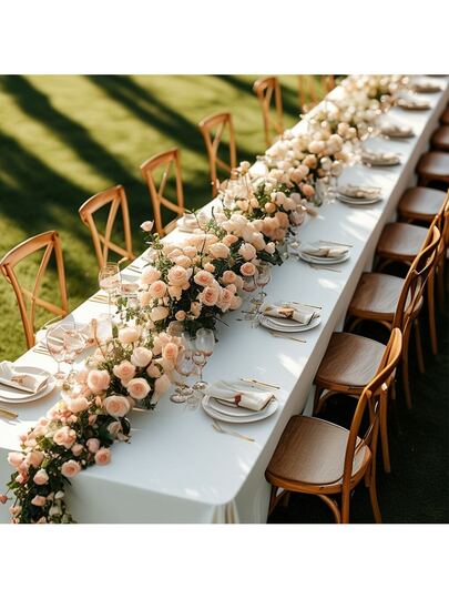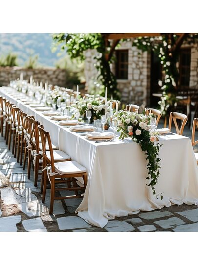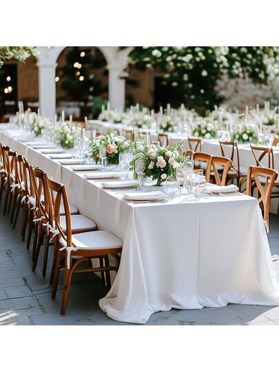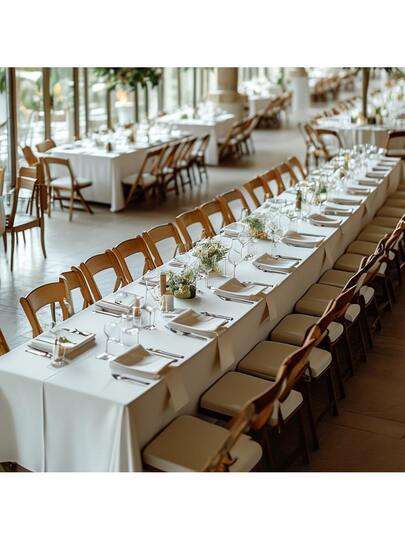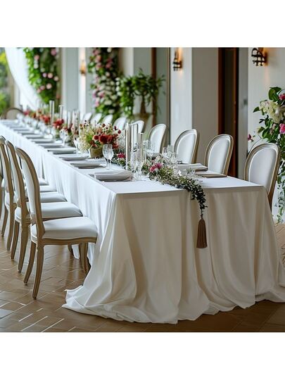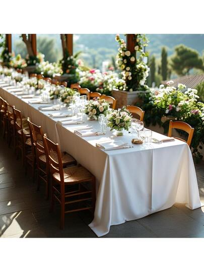 قطعة واحدة - مفرش طاولة أبيض مستطيل كبير الحجم - مناسب لحفلات الزفاف