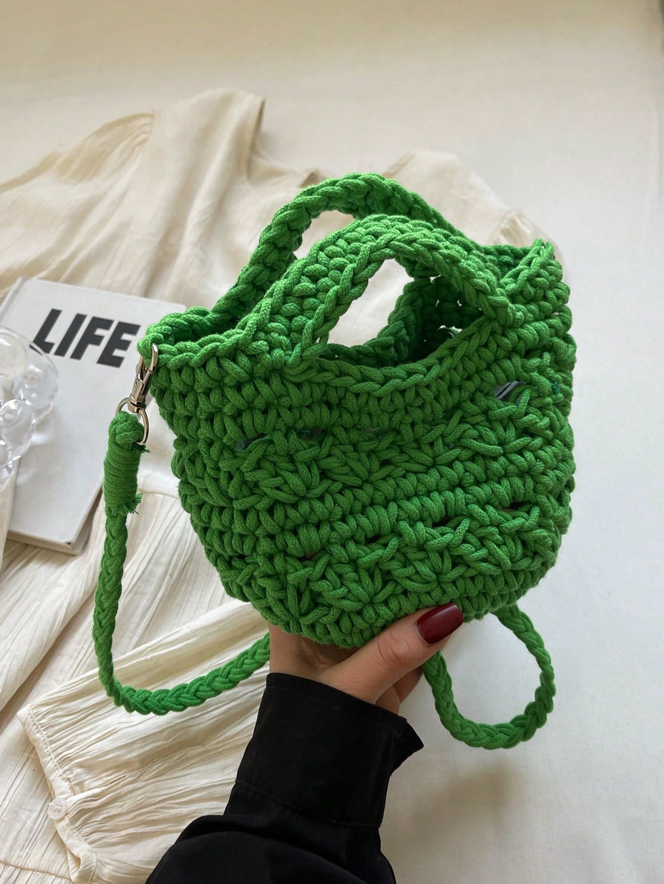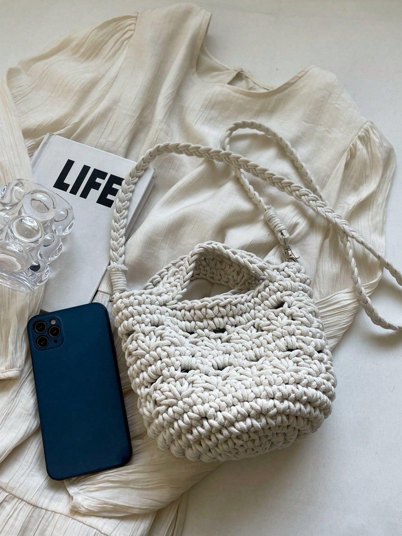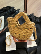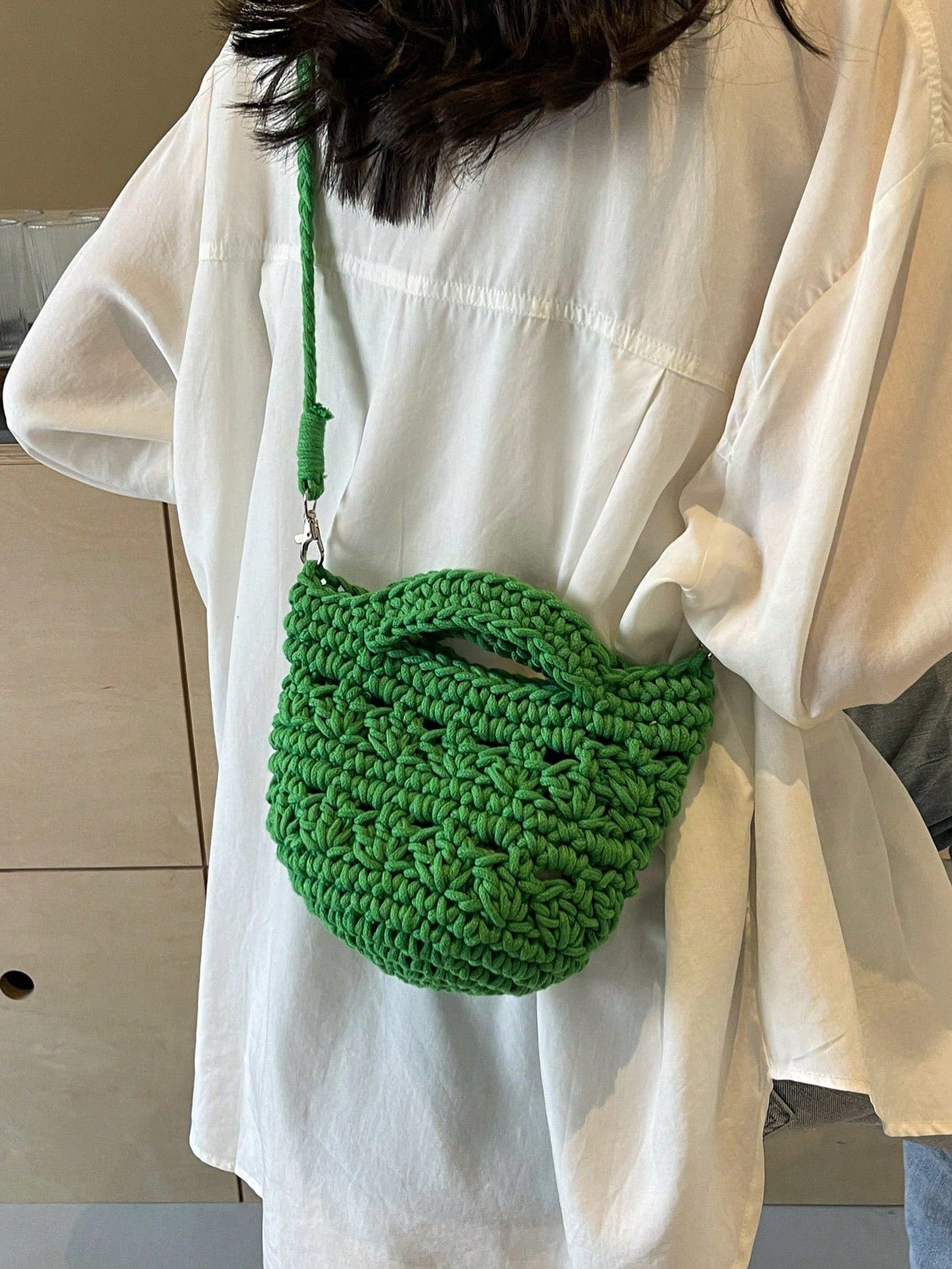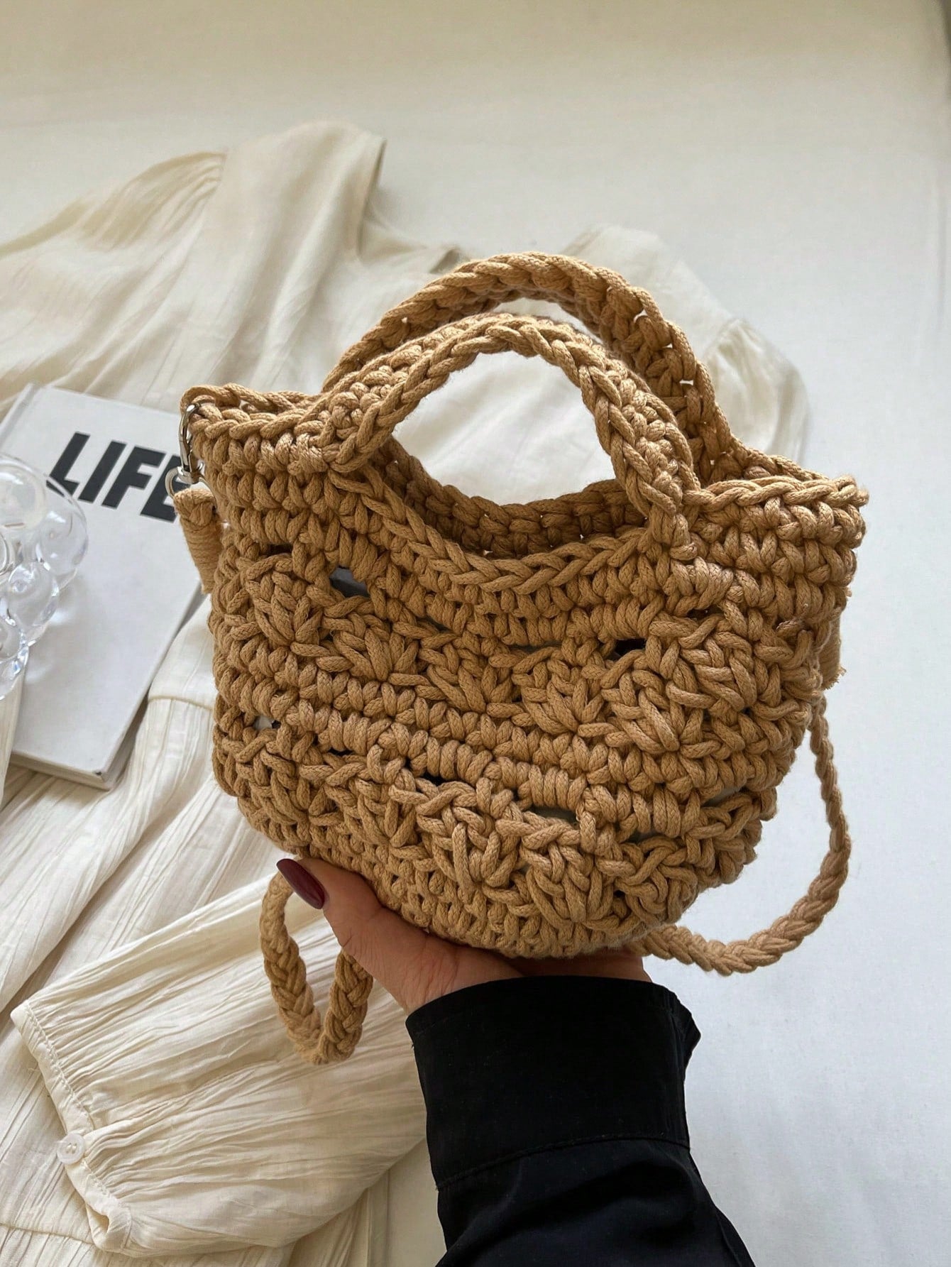 حقيبة تسوق محبوكة بلون سادة - حقيبة شاطئ صغيرة