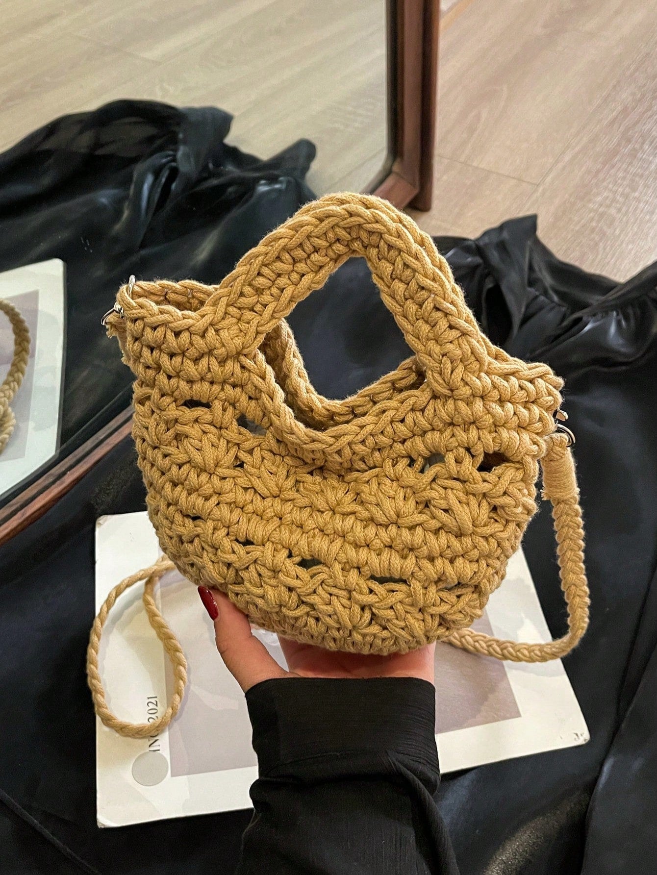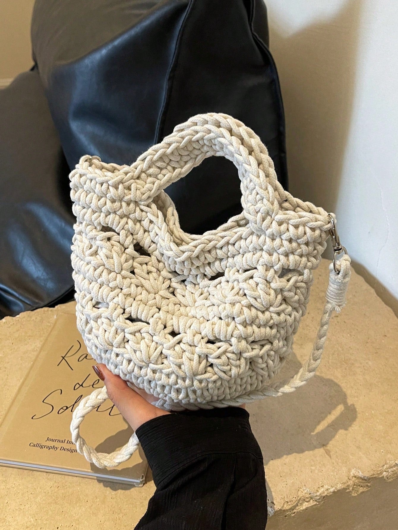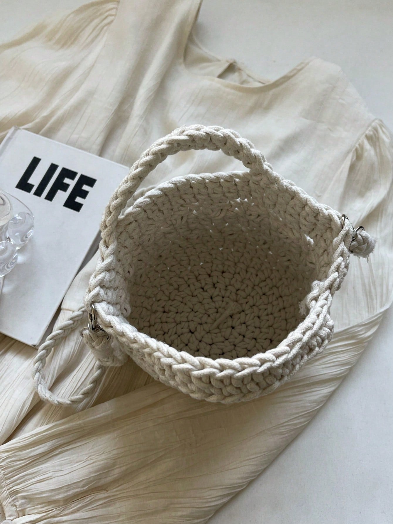 حقيبة تسوق محبوكة بلون سادة - حقيبة شاطئ صغيرة