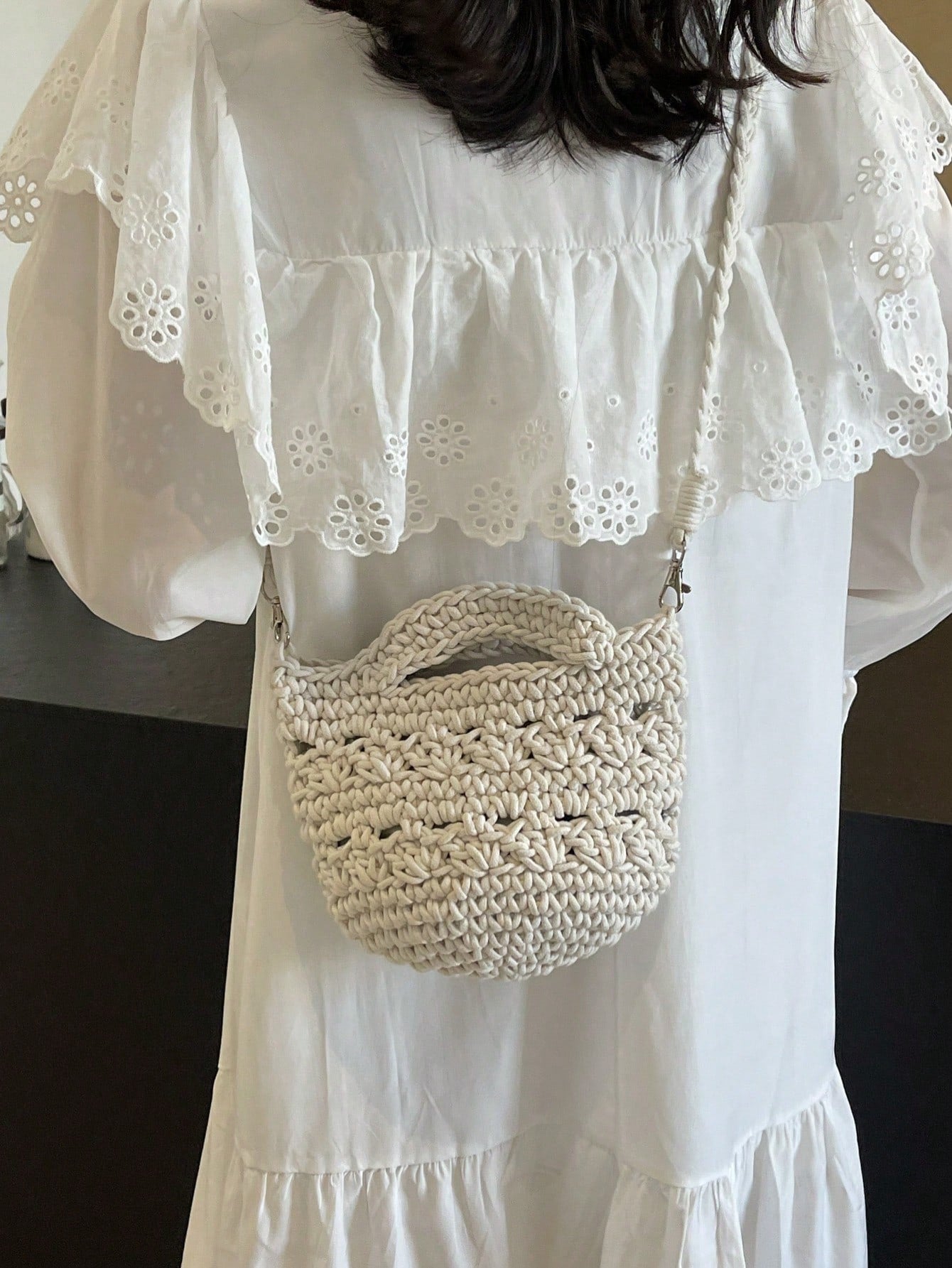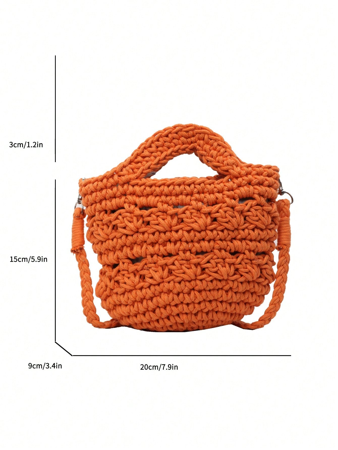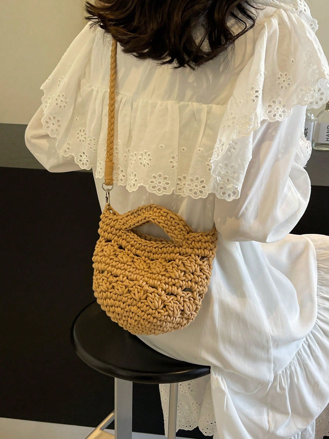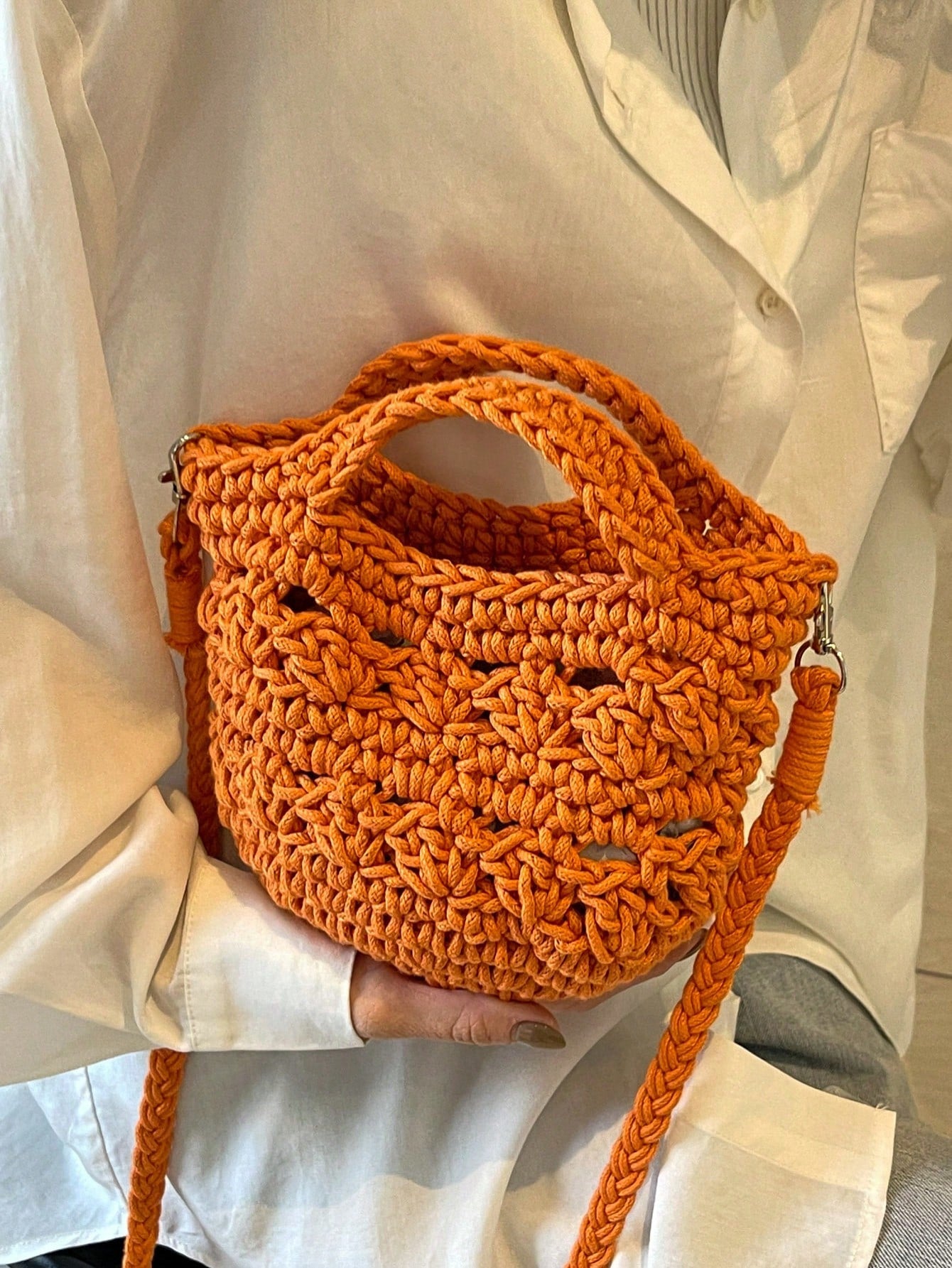 حقيبة تسوق محبوكة بلون سادة - حقيبة شاطئ صغيرة
