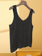 قطعة واحدة من بلوزة نسائية أنيقة بدون أكمام بياقة على شكل حرف V ومقاسات كبيرة