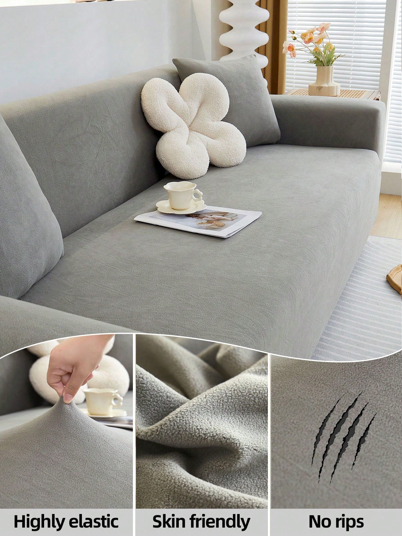 غطاء أريكة بلون موحد، قابل للتمدد بدرجة عالية - مانع للانزلاق