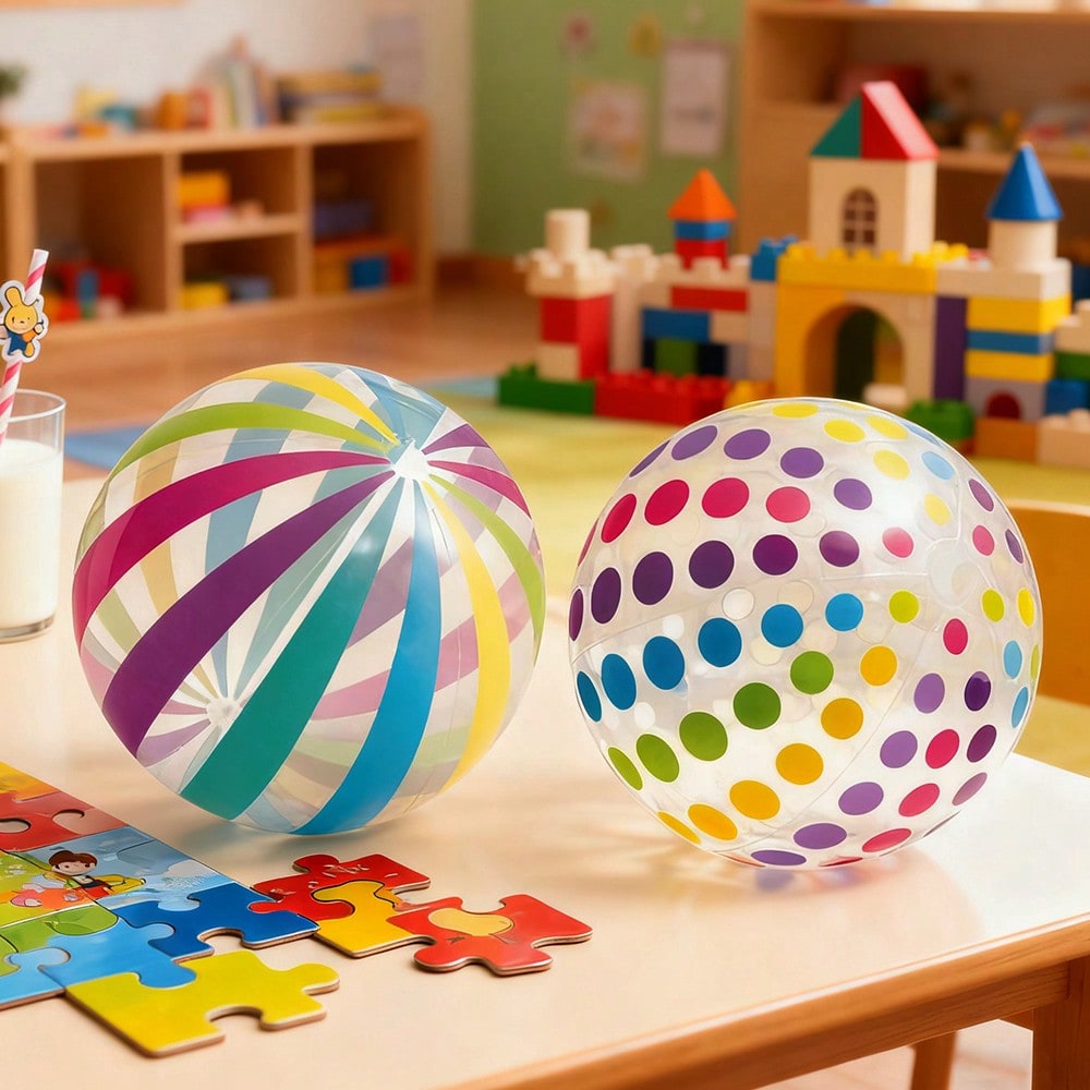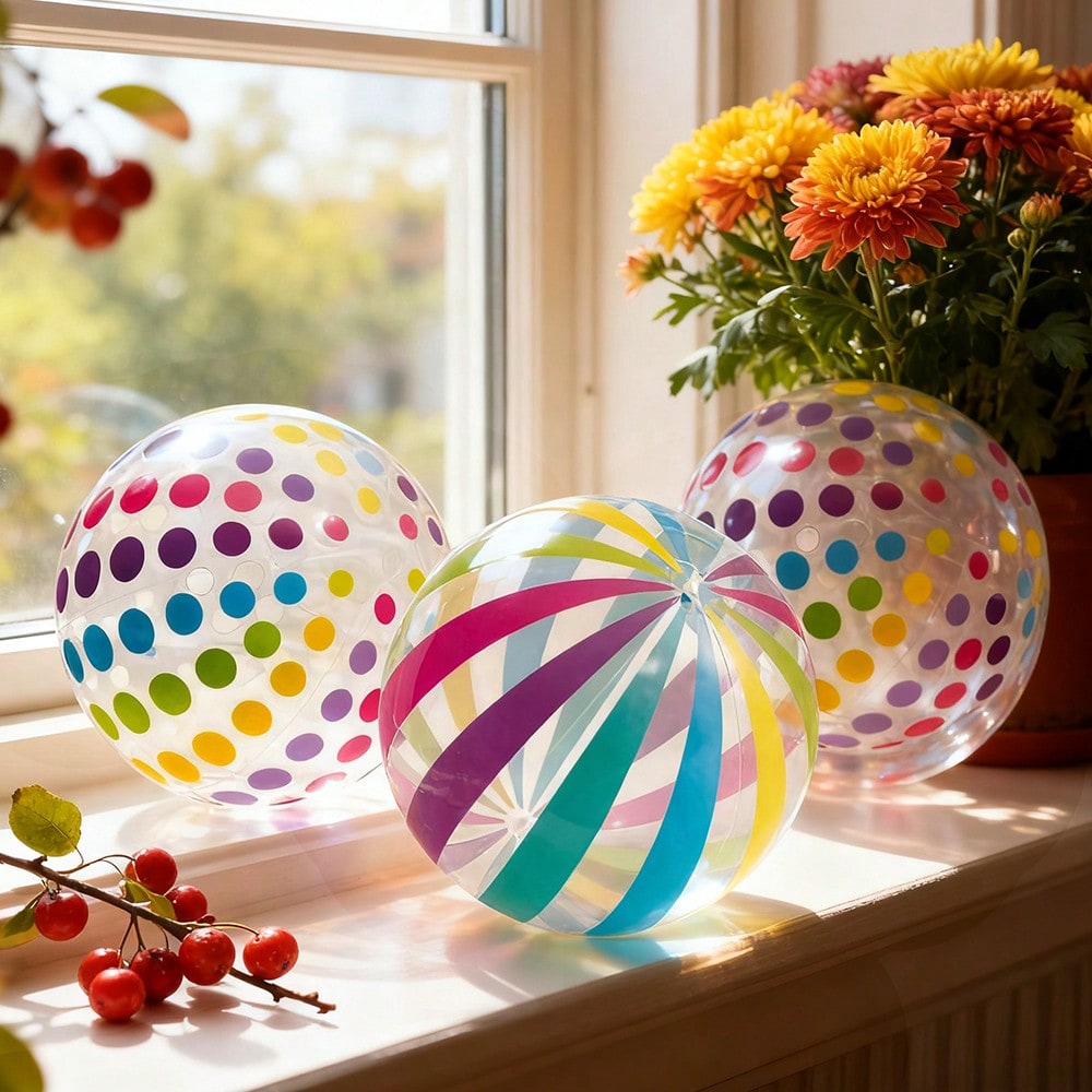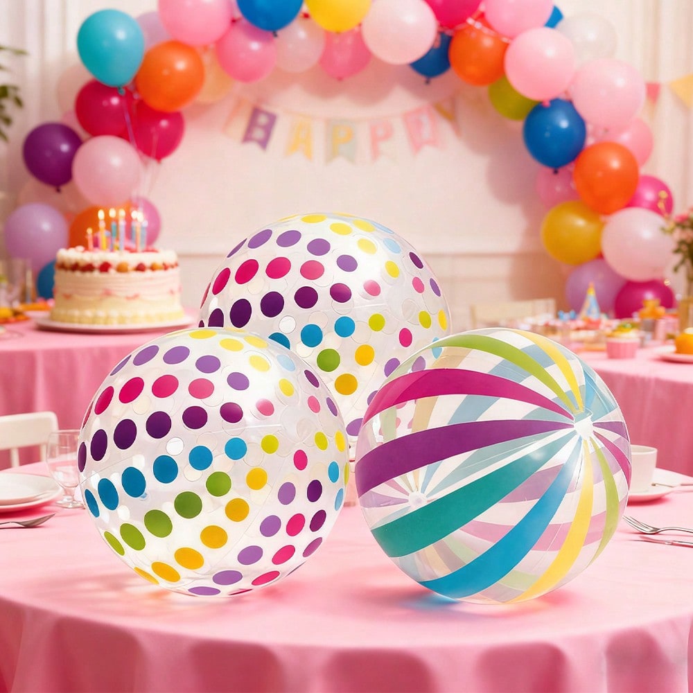 كرة قابلة للنفخ شفافة مخططة قطعة واحدة - كرة شفافة منقطة من مادة PVC