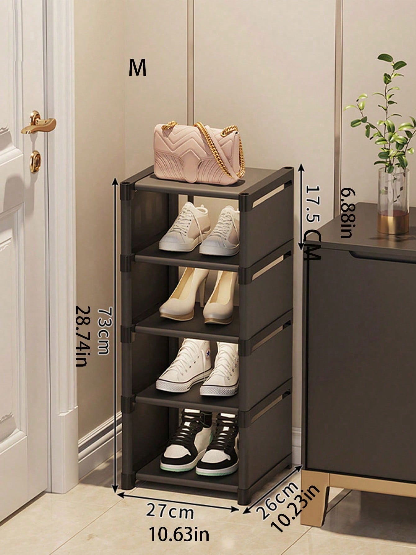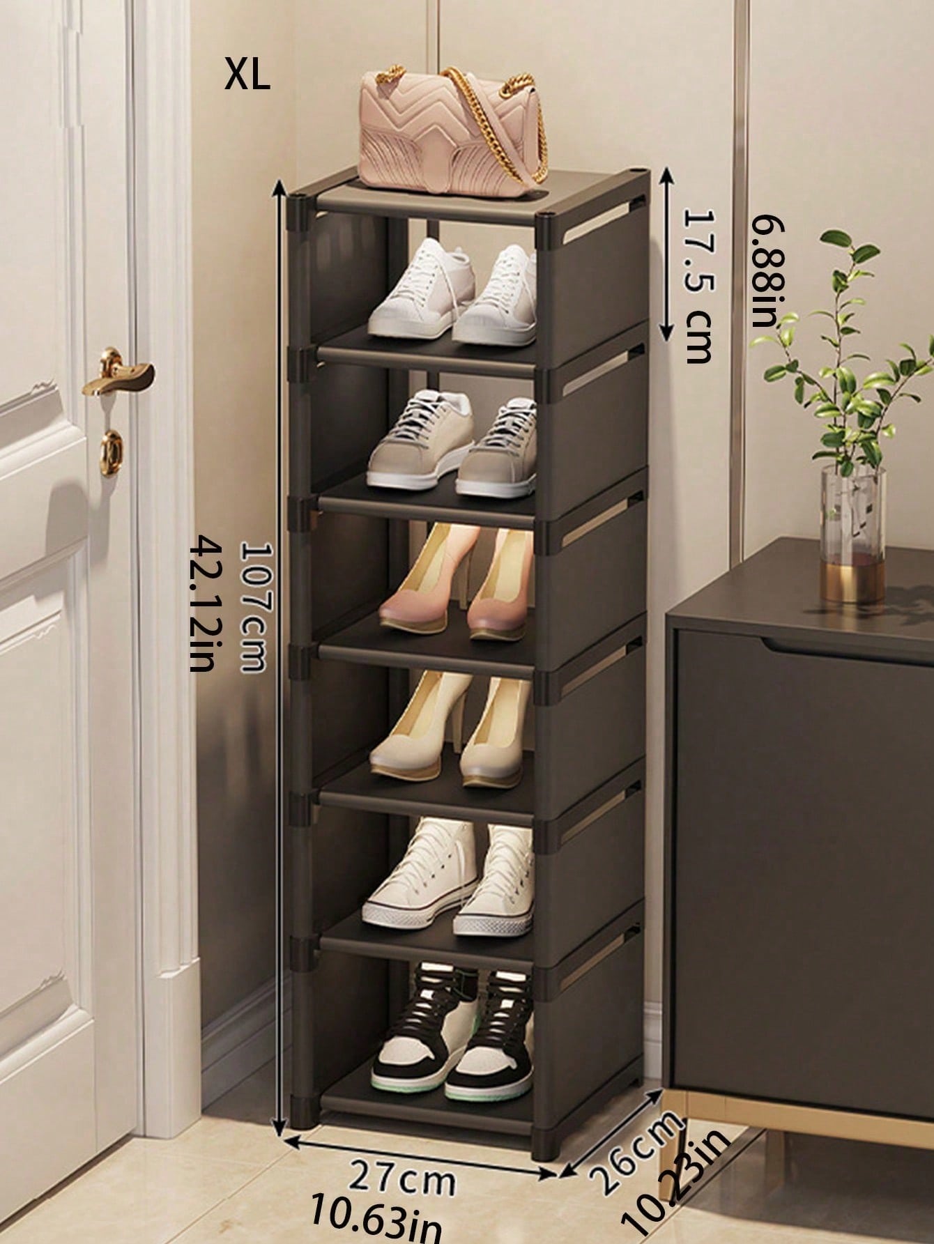 رف أحذية منزلي أبيض أسود قطعة واحدة، 3/4/5/6/7 طبقات