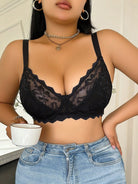 حمالة صدر نسائية مقاس كبير من الدانتيل المرقع مع سلك داعم - مريحة