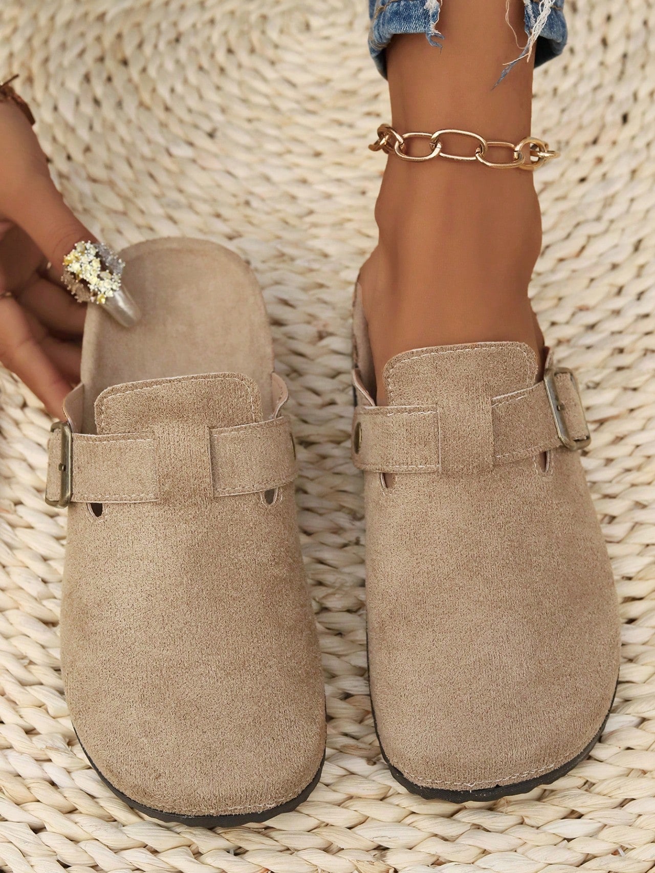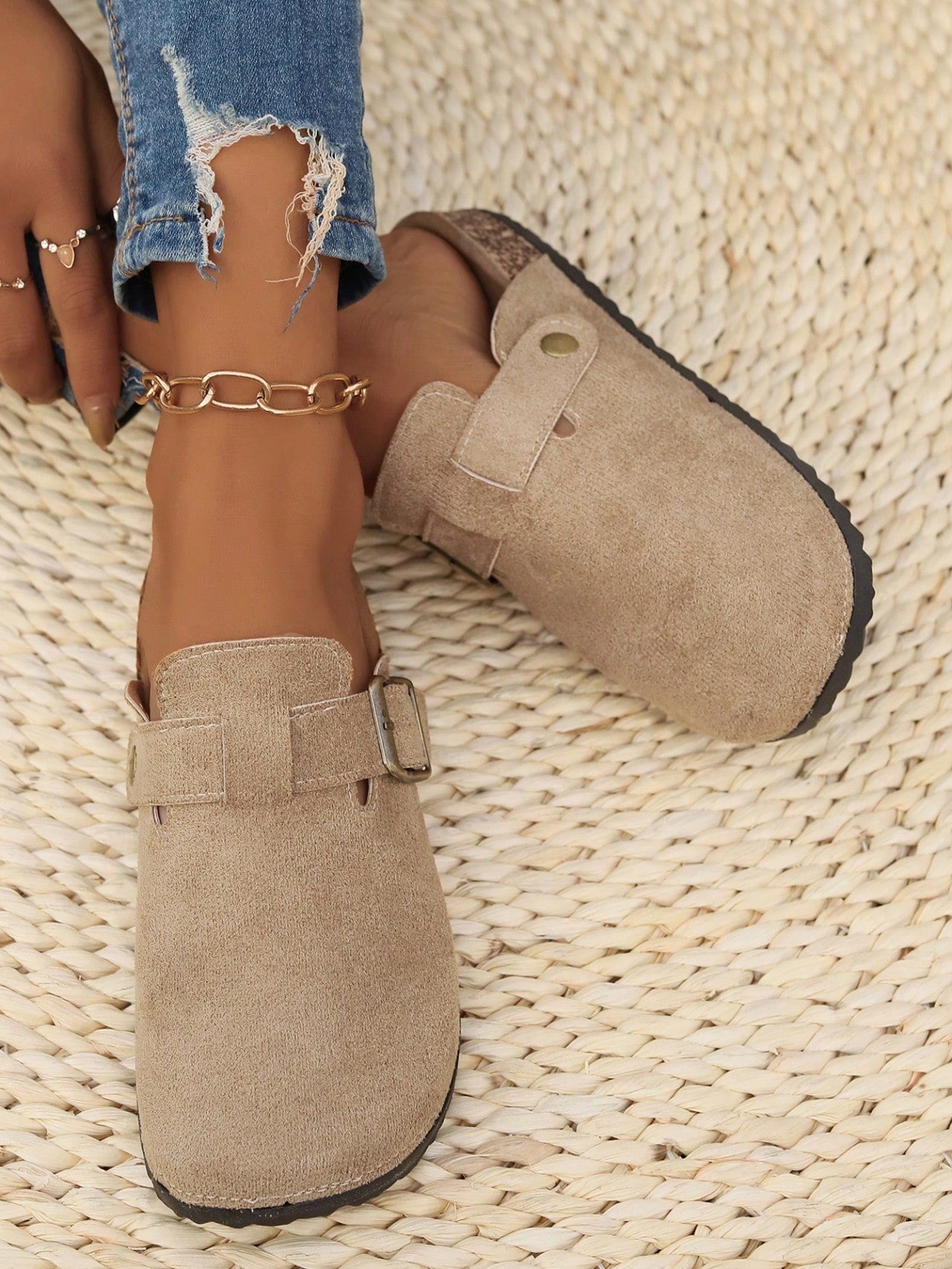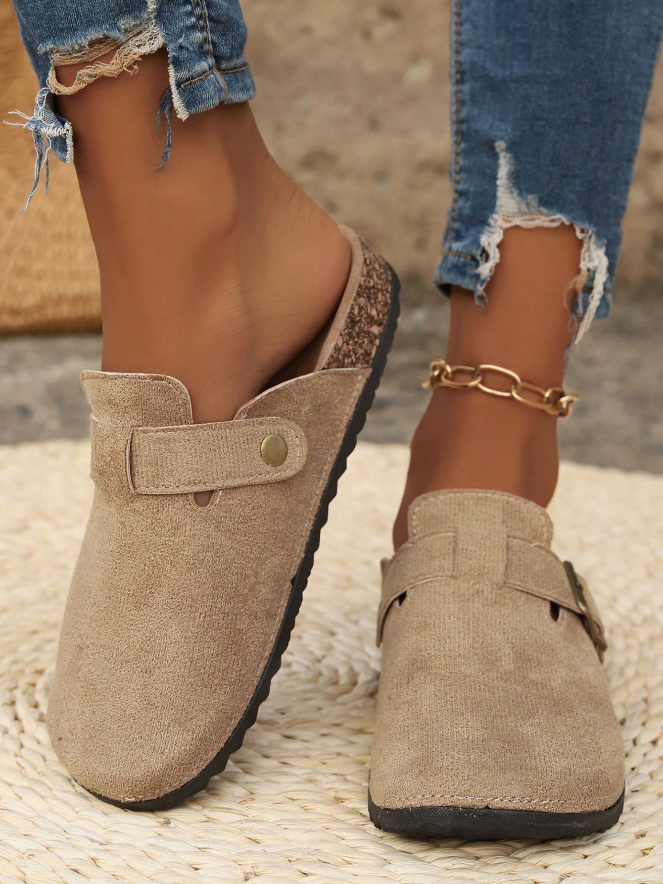 أحذية نسائية مسطحة مفتوحة من الخلف بنعل سميك، مناسبة لخريف 2025، بمقاسات كبيرة