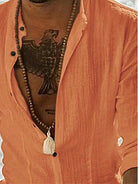 قميص رجالي بأكمام طويلة، ناعم الملمس، لطيف على البشرة، بتصميم كاجوال مخطط أو سادة، مناسب لفصلي الربيع والصيف 2025.