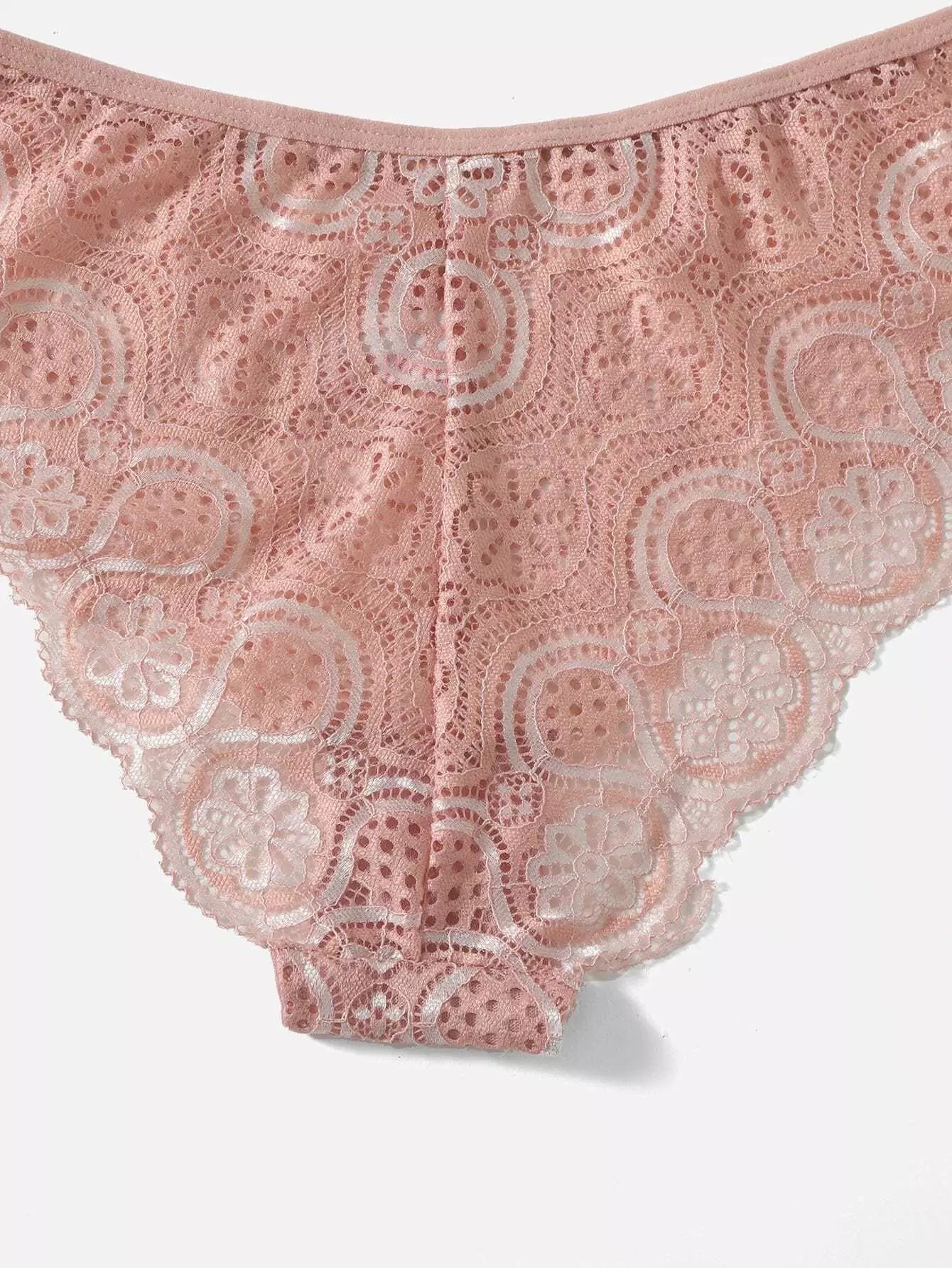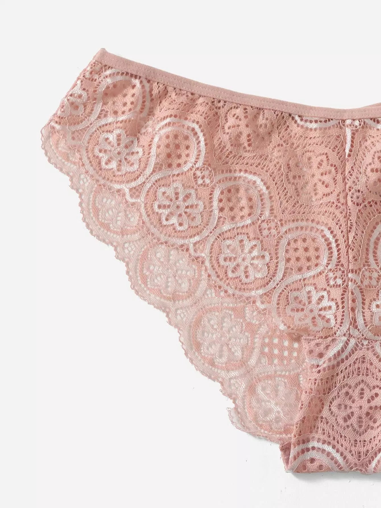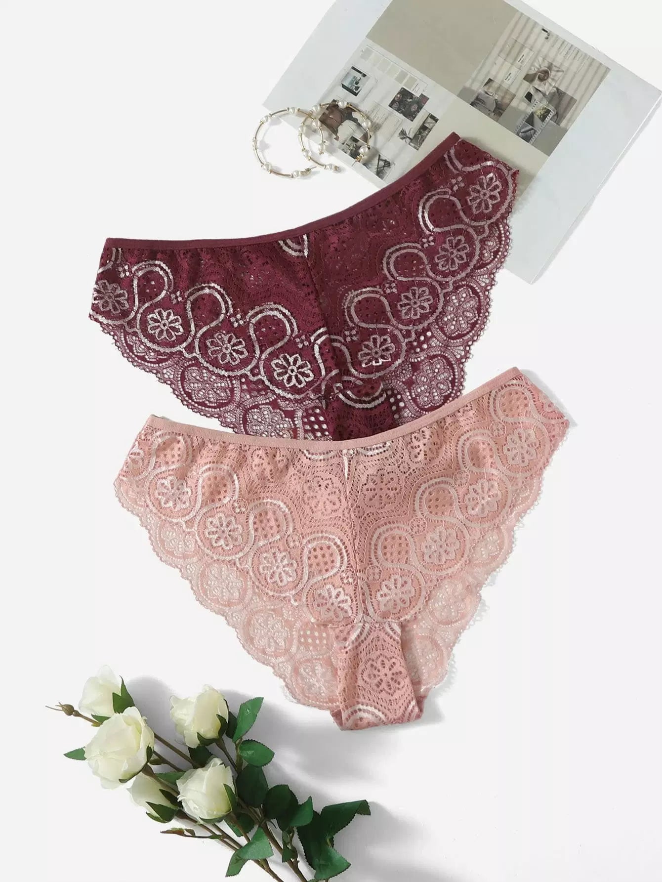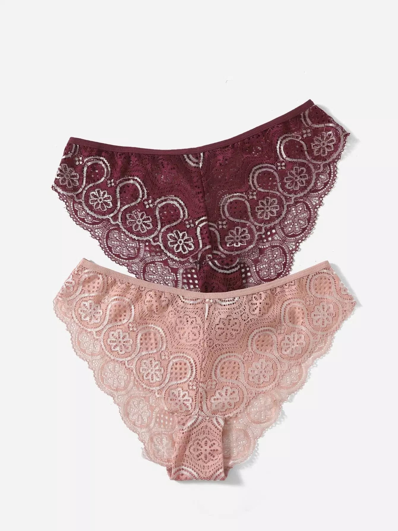 طقم سراويل داخلية بحواف من الدانتيل المزين بالأزهار والصدف 2 عبوة بلس