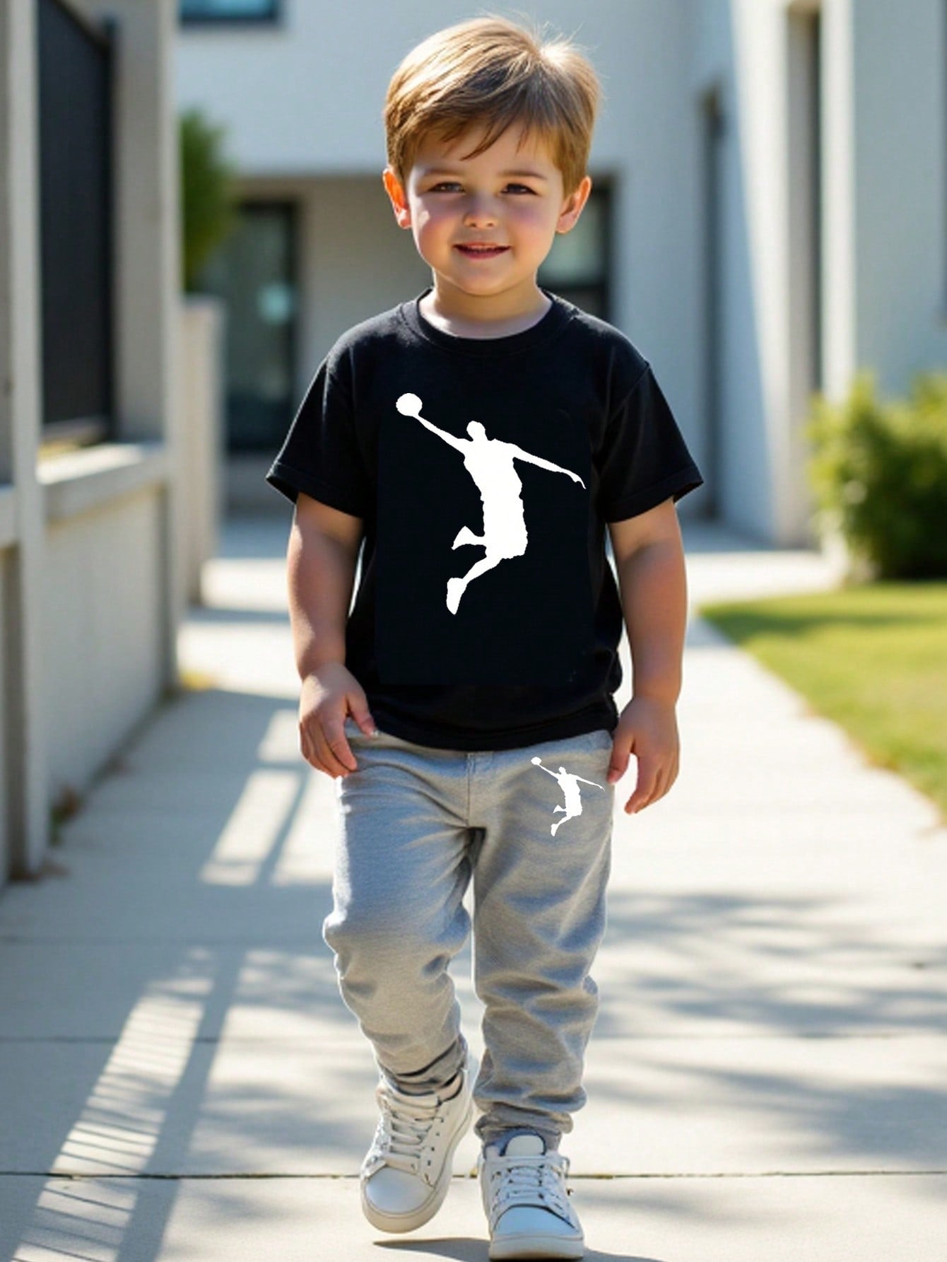 2pcs/Set Boys' Casual Simple Basketball Pose Graphic Round Neck Short Sleeve T-Shirt And Pants Set