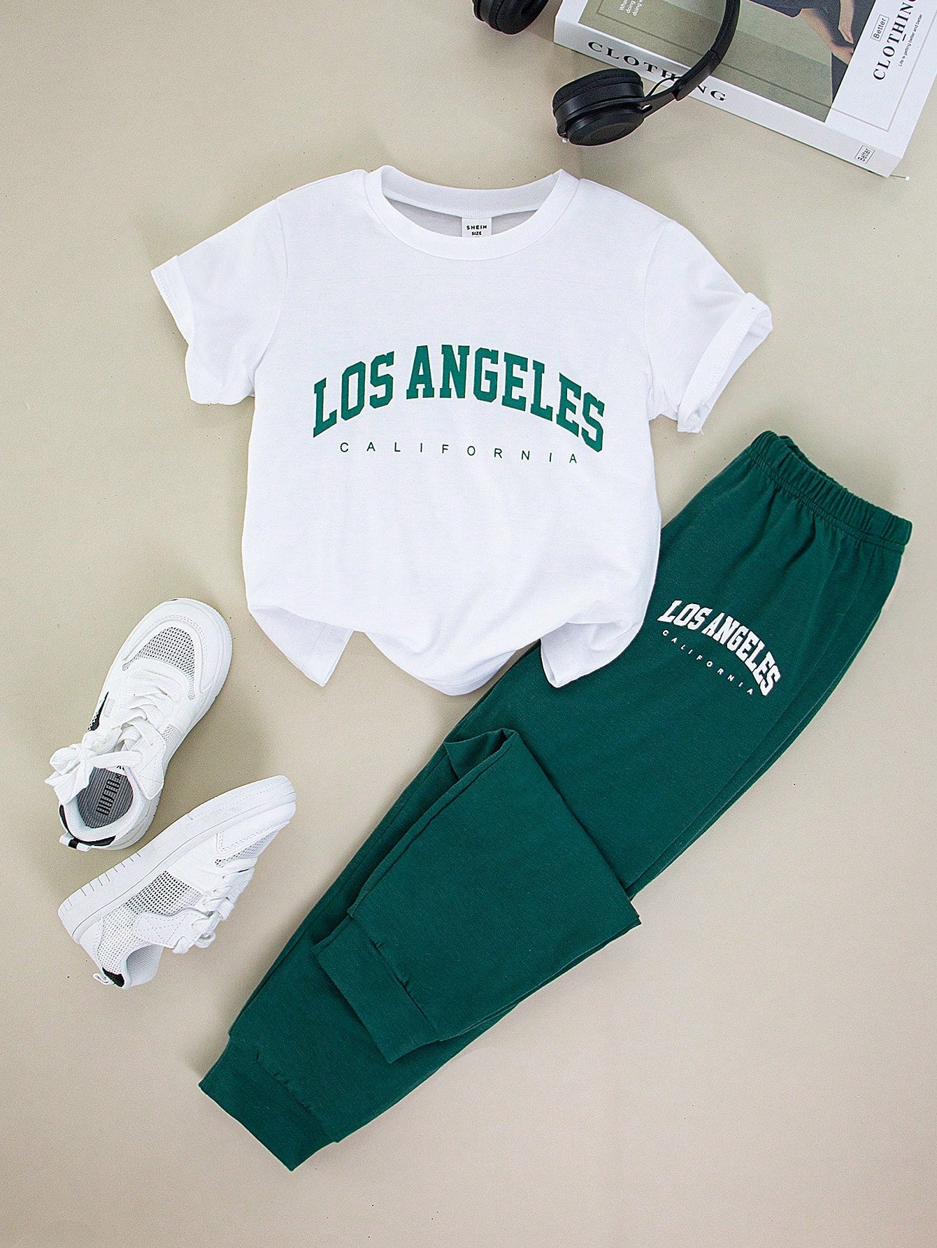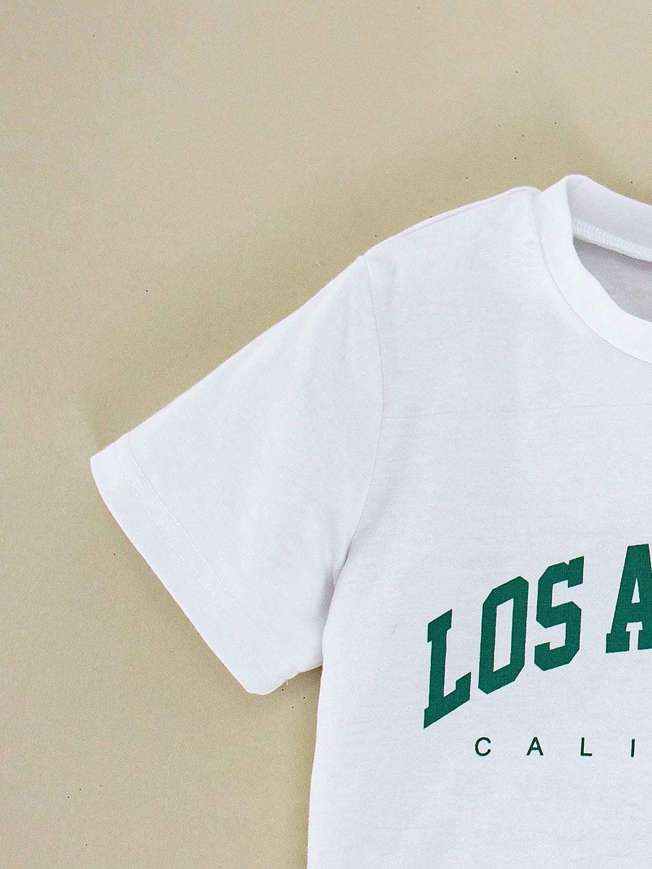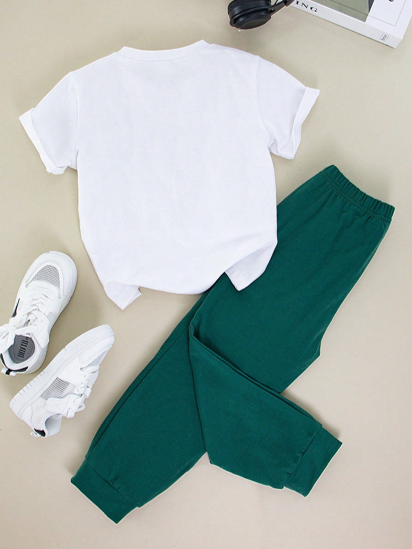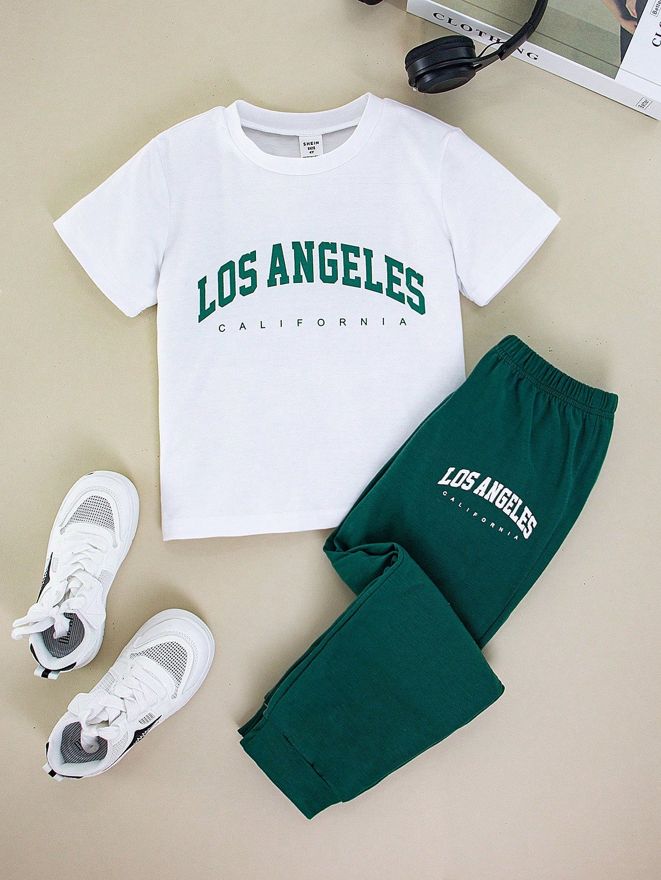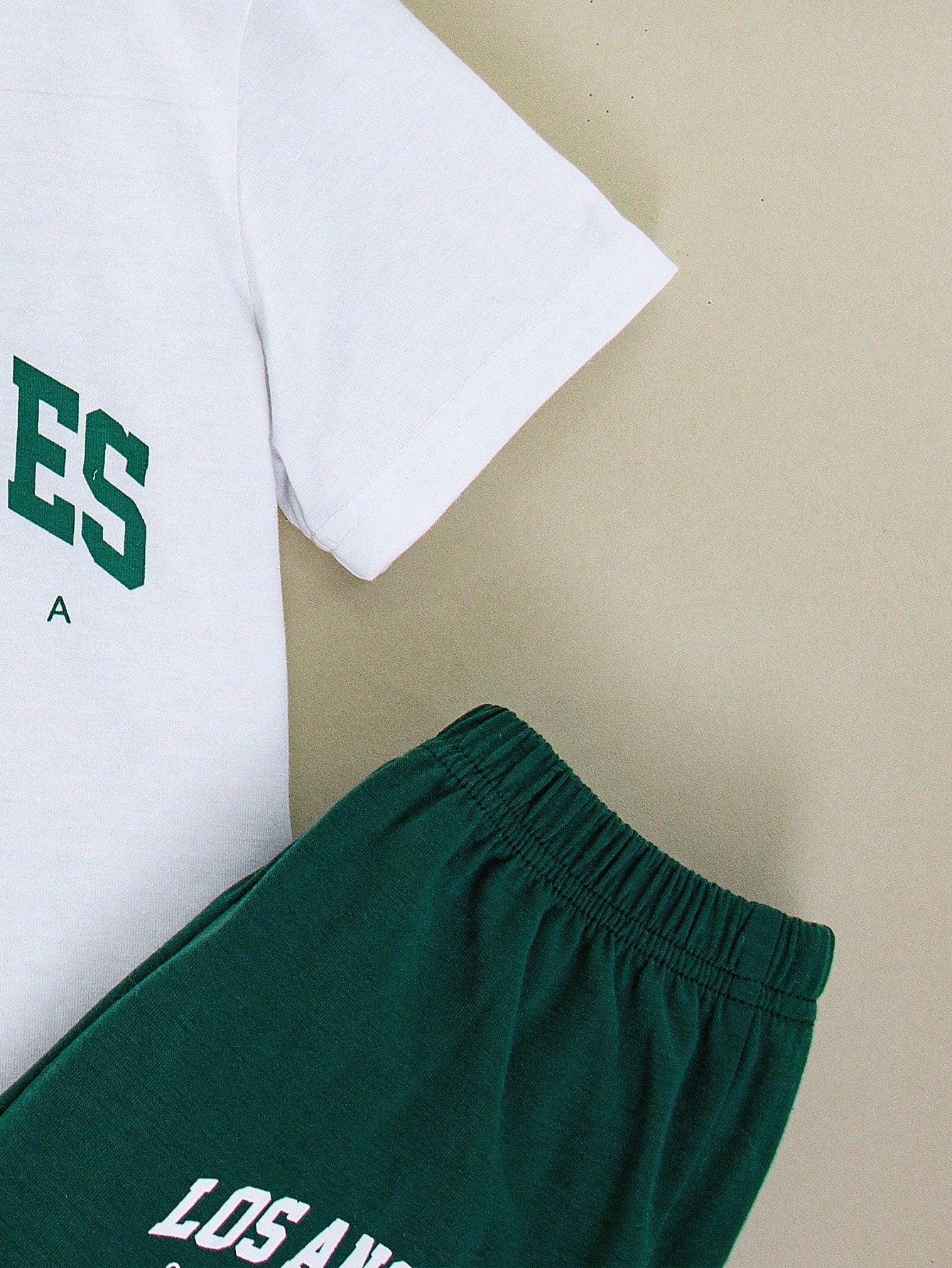 طقم ملابس للأولاد الصغار مكون من قطعتين، تي شيرت بأكمام قصيرة ورقبة دائرية وبنطلون طويل، مطبوع عليه حروف وأرقام بسيطة