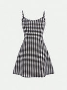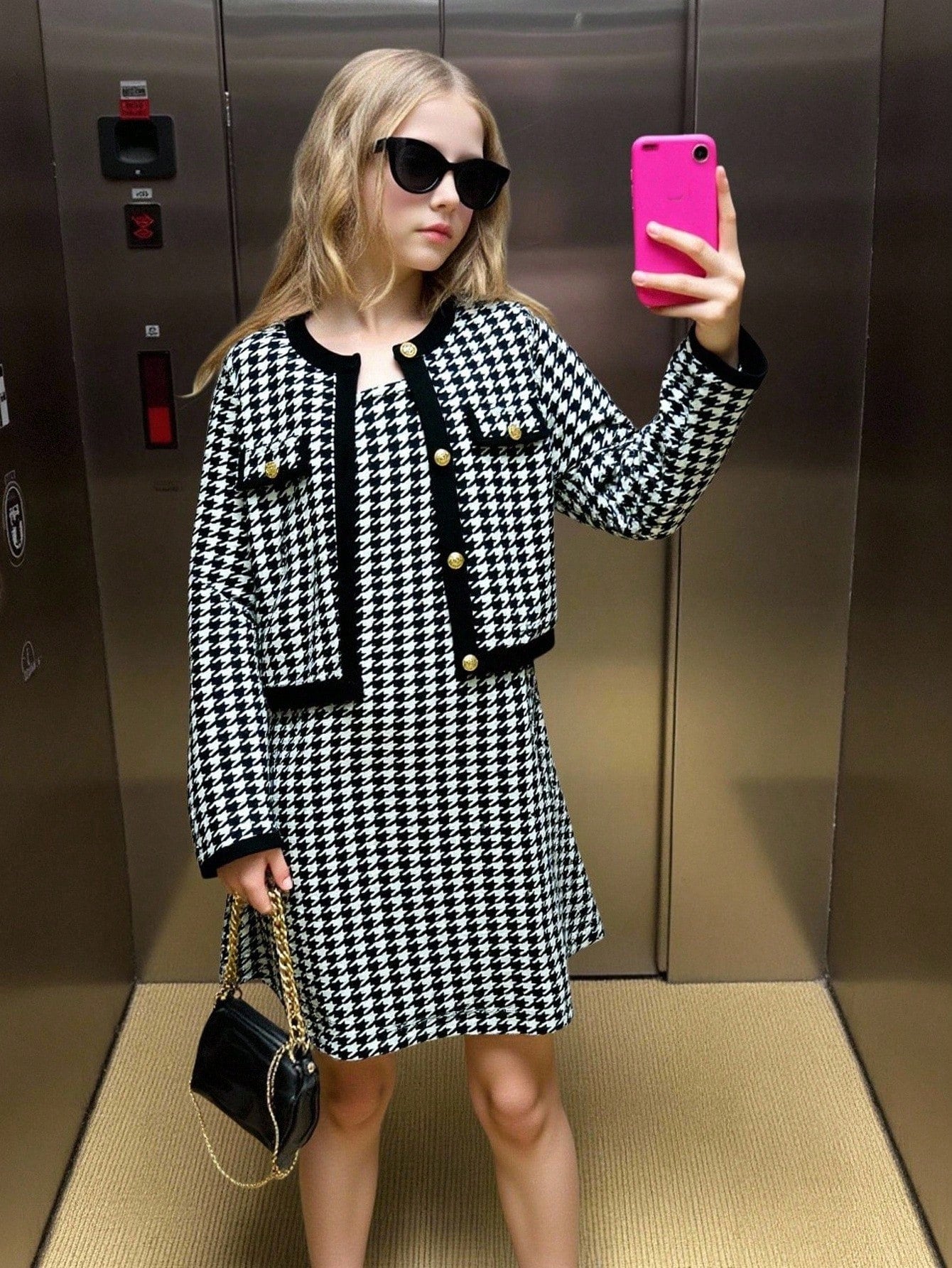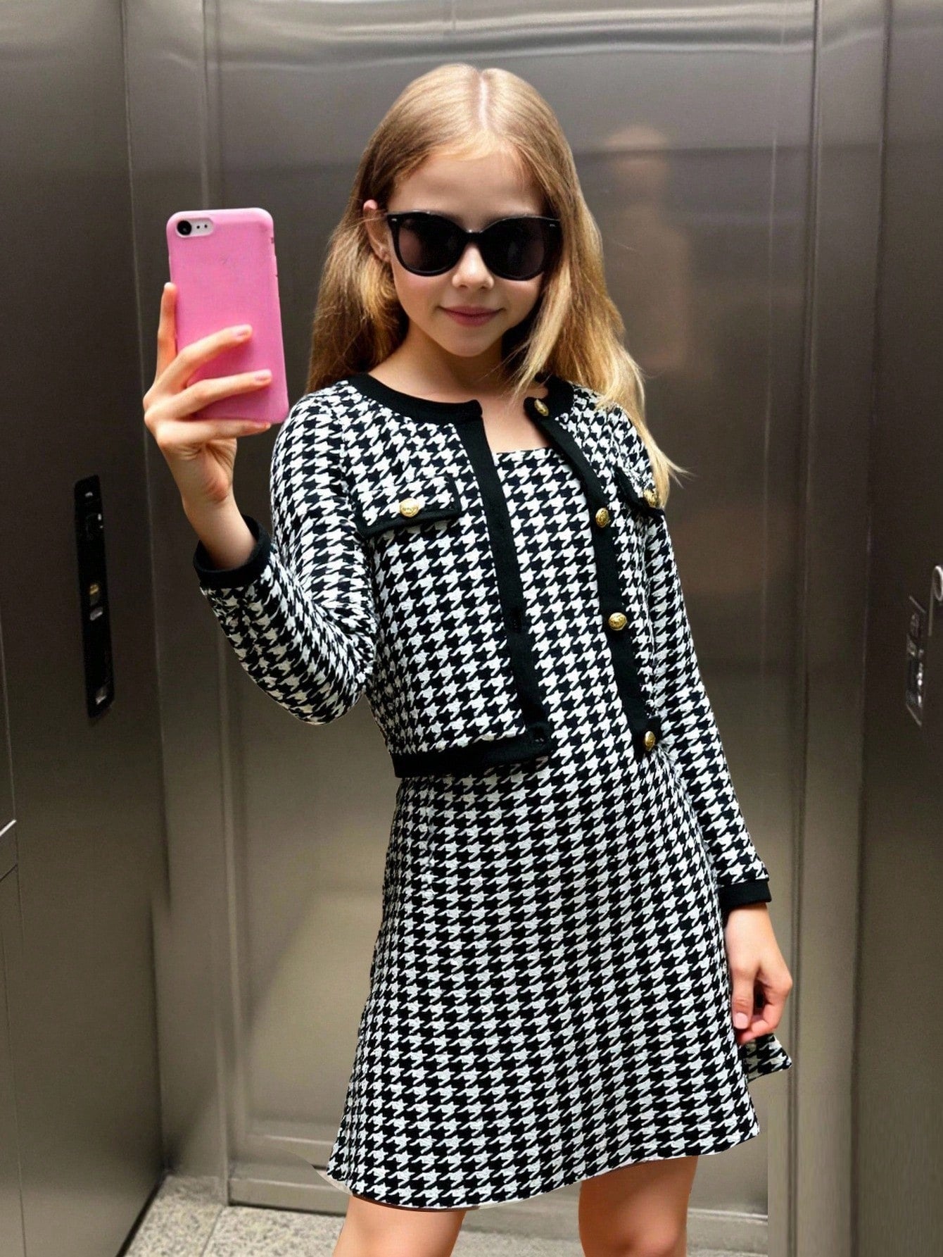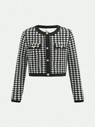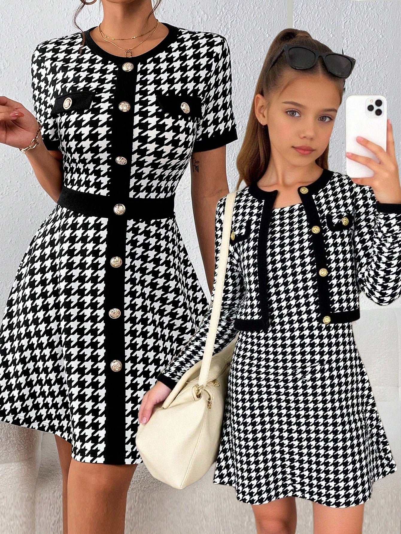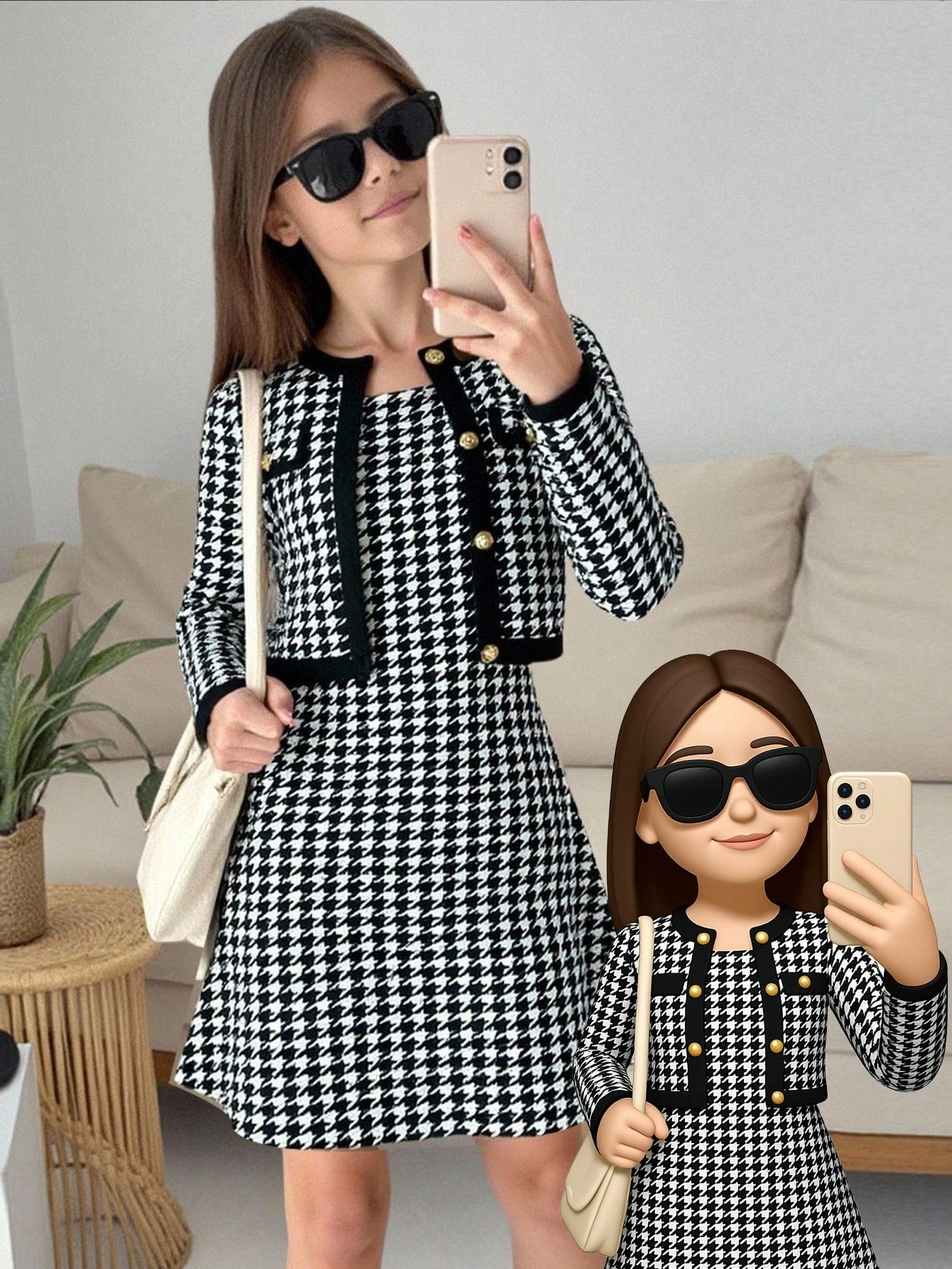 طقم من قطعتين: فستان داخلي بنقشة مربعات فرنسية وجاكيت بلون متباين للفتيات المراهقات