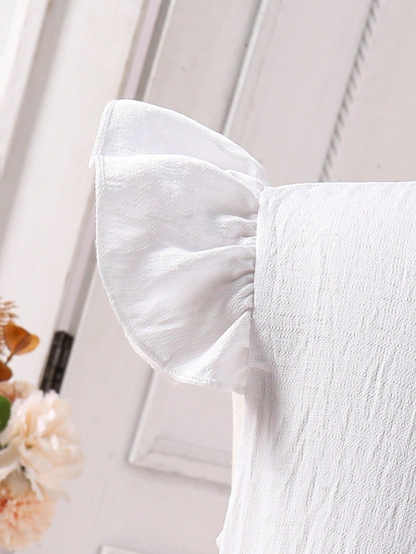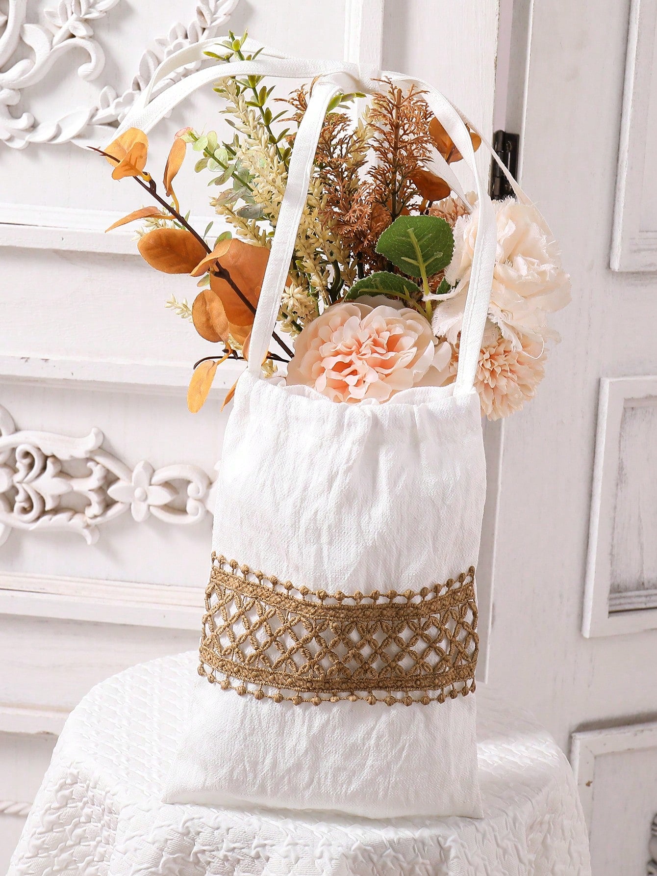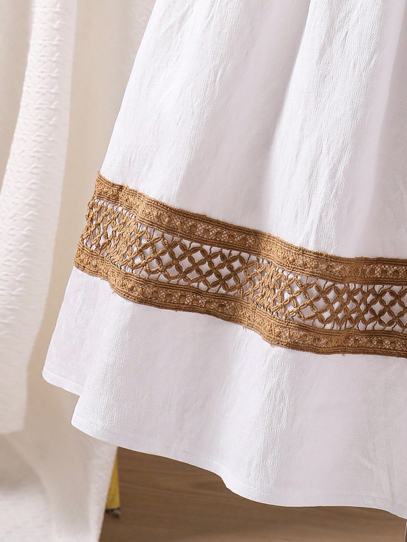 2pcs Tween Girls Cap Sleeve Floral Lace Trim Round Neck Dress + Crossbody Bag, Vacation Style, Spring/Summer