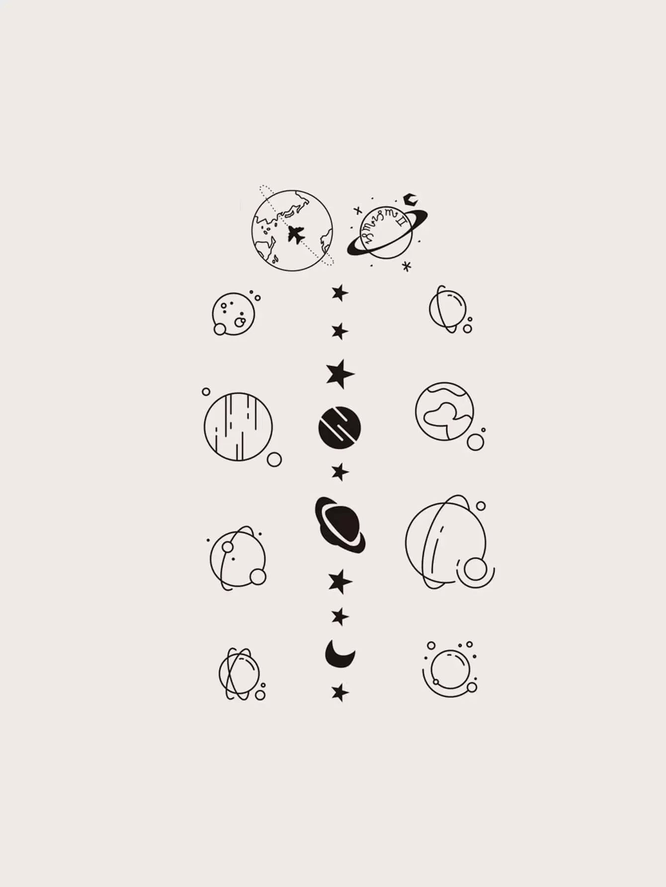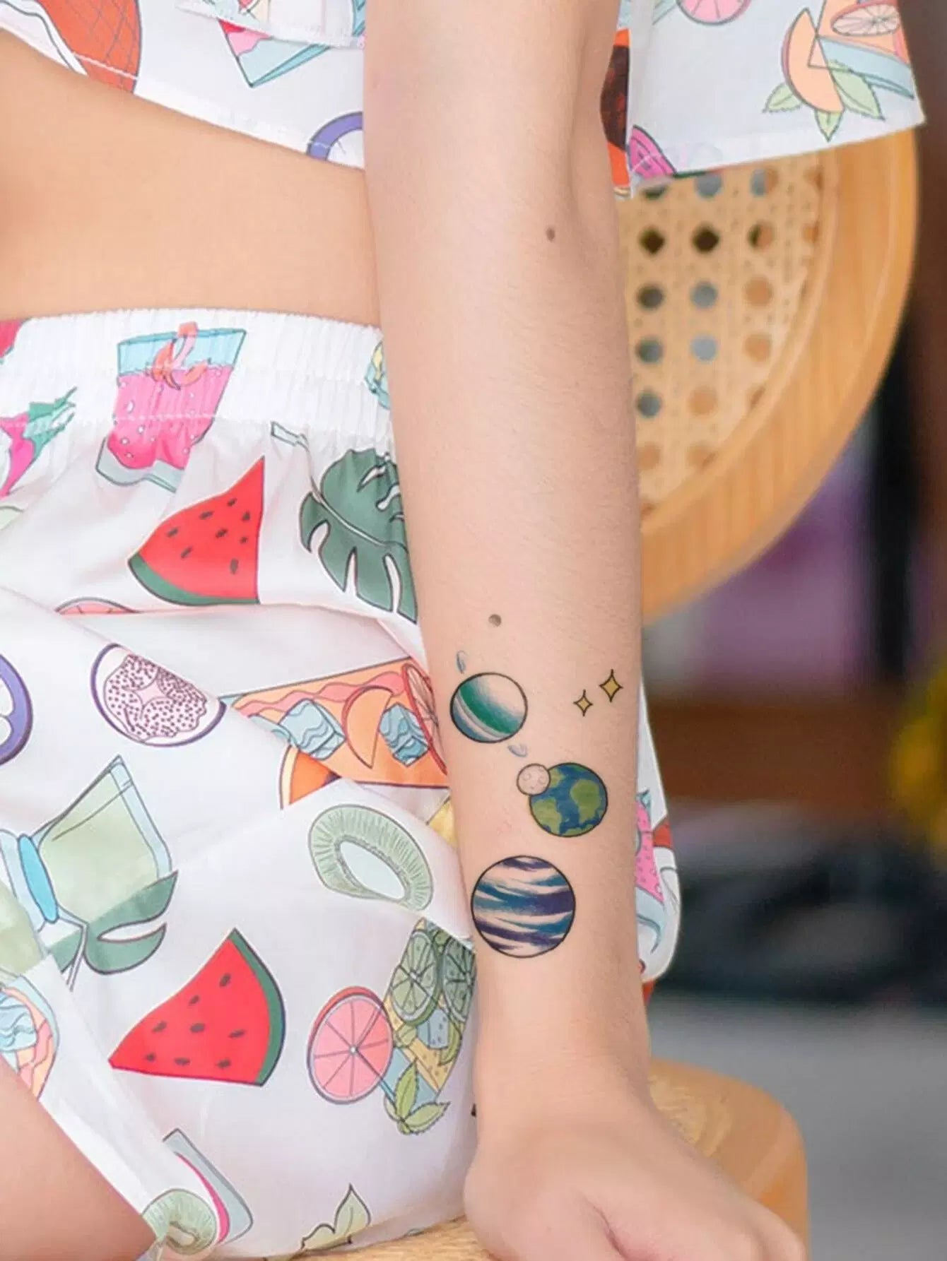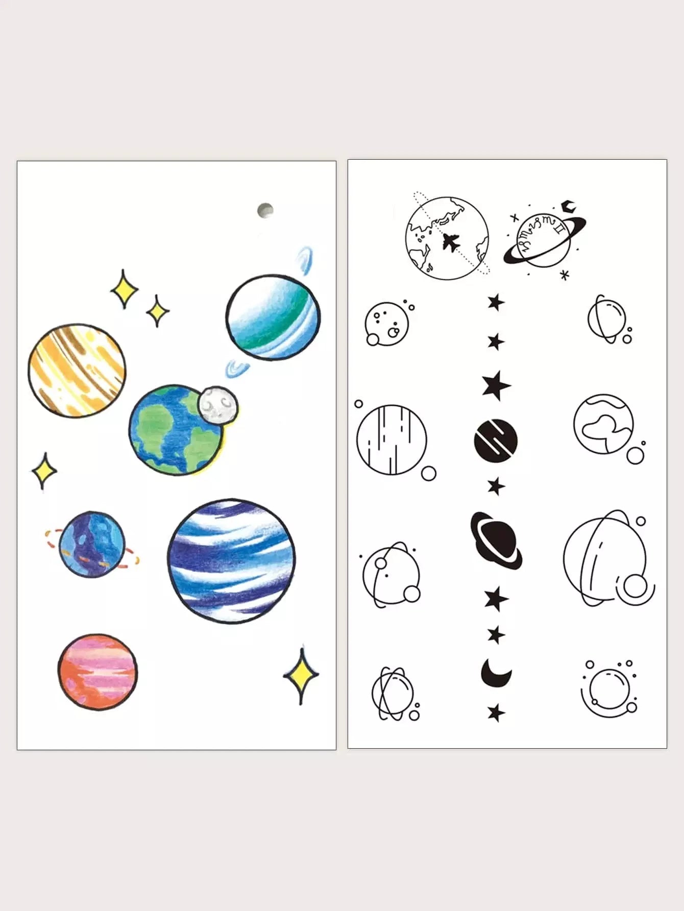 ملصق وشم بنمط كوكب مكون من ورقتين